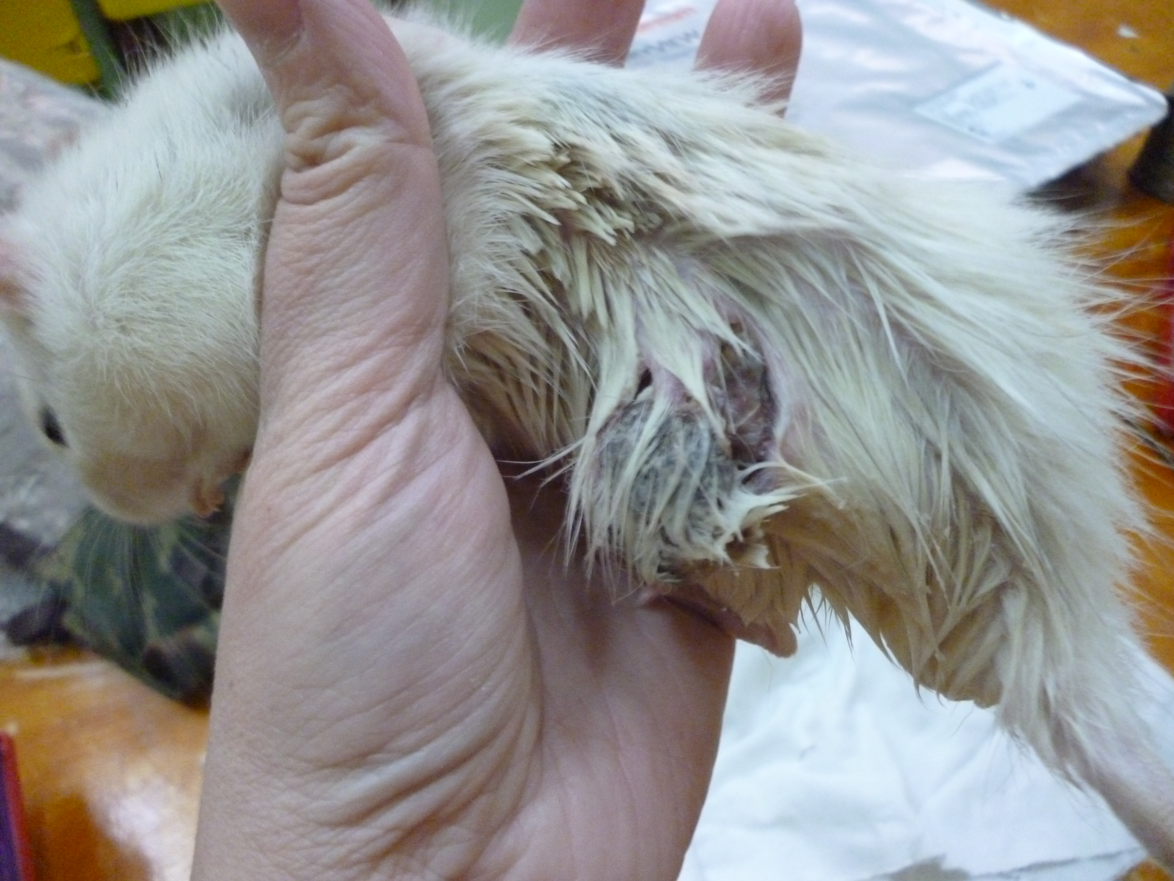У второго крыса дырка довольно большая, внутри нее можно ватными палочками смазанными левомеколевой мазью прочищать. Мазь замедлит заживление, но зато прочищать будет удобнее, пока дырка не затянется.