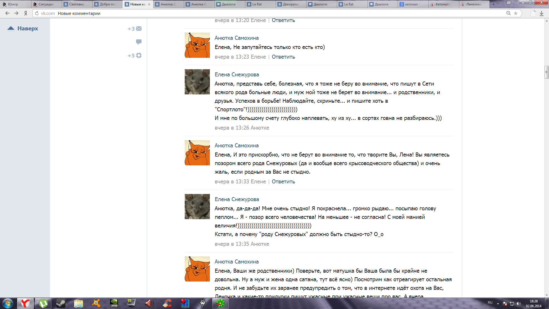 p.s. в добавление к вышесказанному хочу посоветовать тебе написать разные гадости про меня моим родственникам, указанным в социальных сетях. Некоторые из них работают в серьезных силовых правоохранительных структурах и при получении неприятного сообщения, могут воспользоваться своим служебным положением в твоих воспитательных мерах. Со своей стороны, обещаю им в этом не препятствовать.