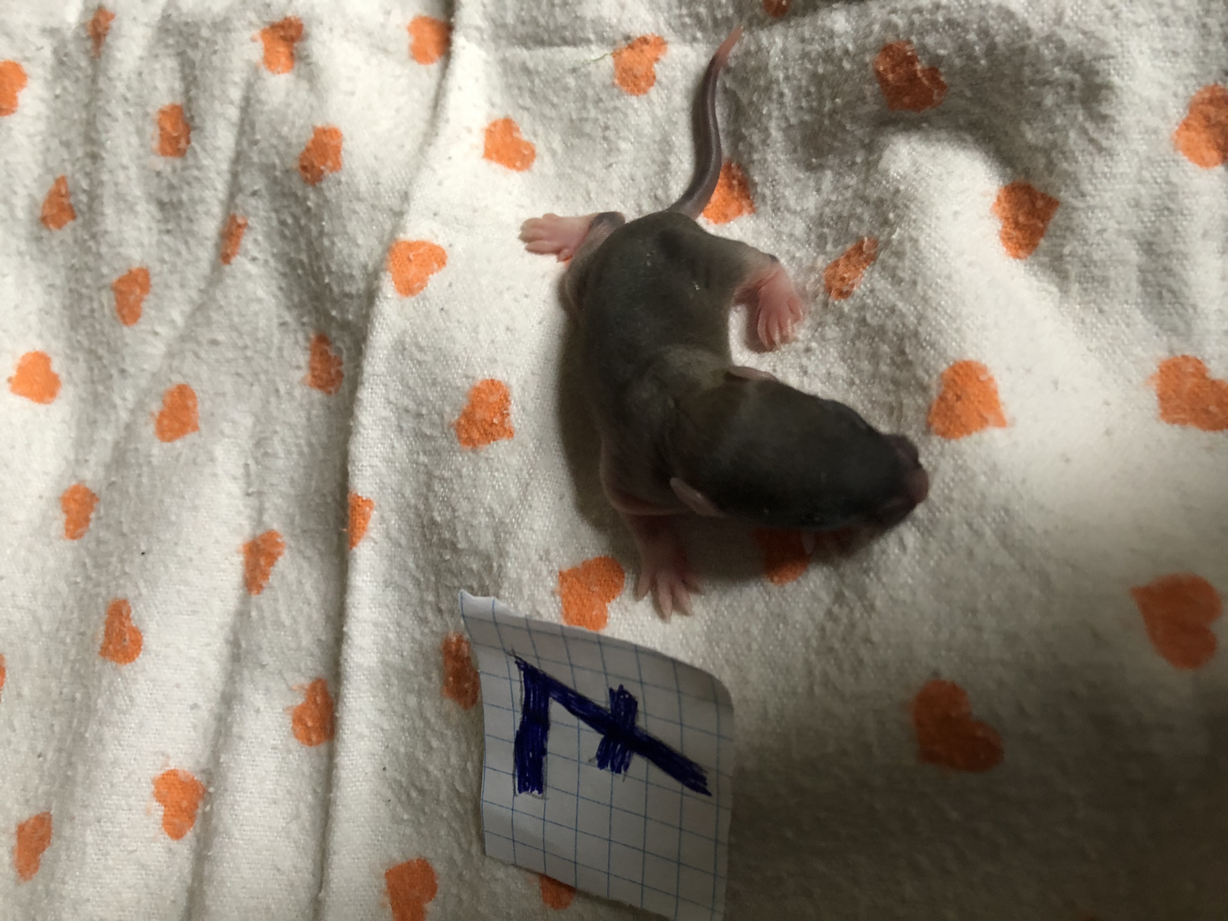 Посмотрите внимательно на животик каждого крысенка. Сейчас очень хорошо видно у кого есть соски, а у кого их нет. У девочек есть соски, у мальчиков нет.