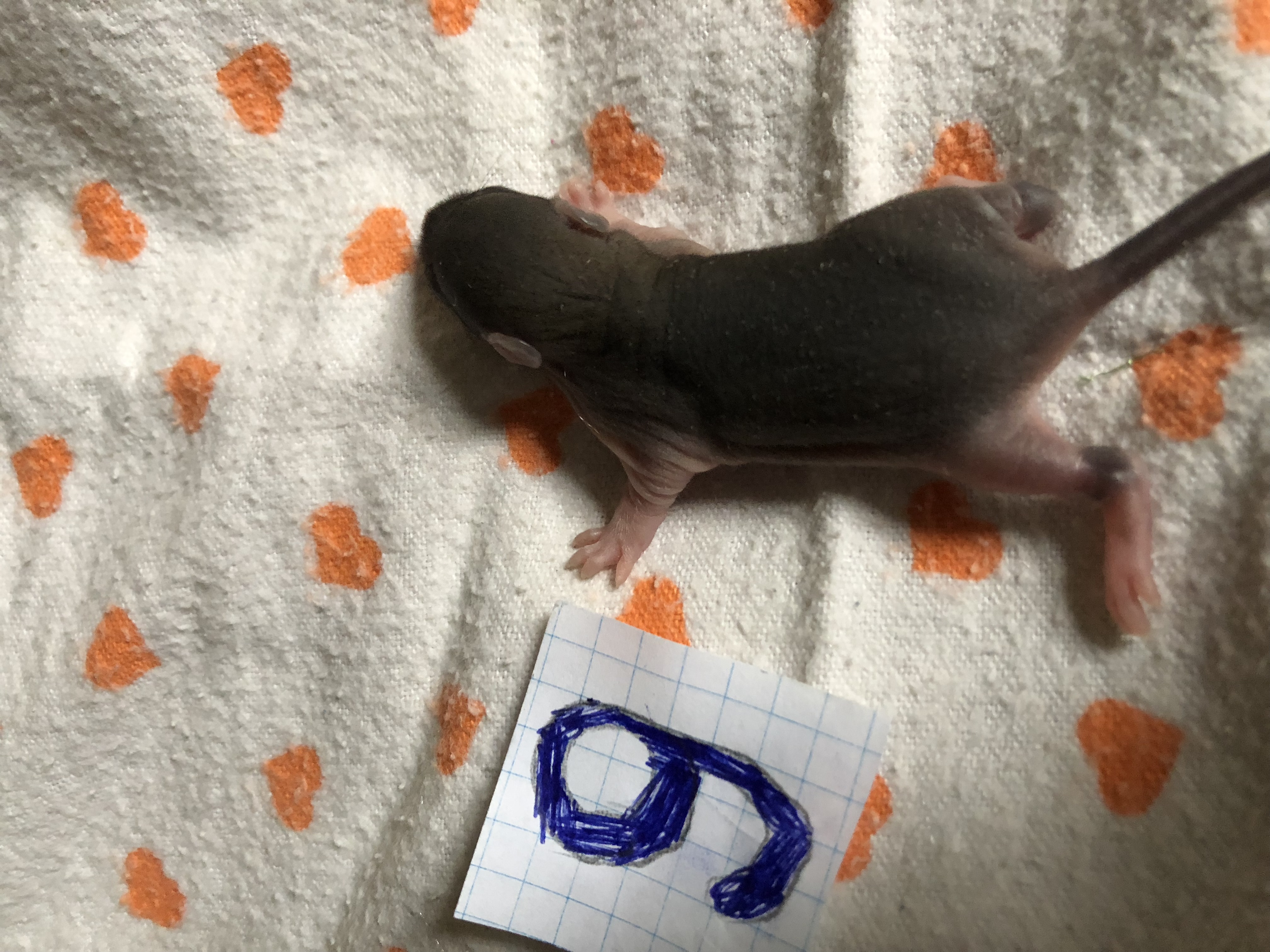 А если отличий нет, то на хвостиках рисуют полосочки, точечки в разном порядке, чтобы можно было идентифицировать каждого крысенка в соответствии с его фото (зеленкой, фукорцином или маркером несмываемым).