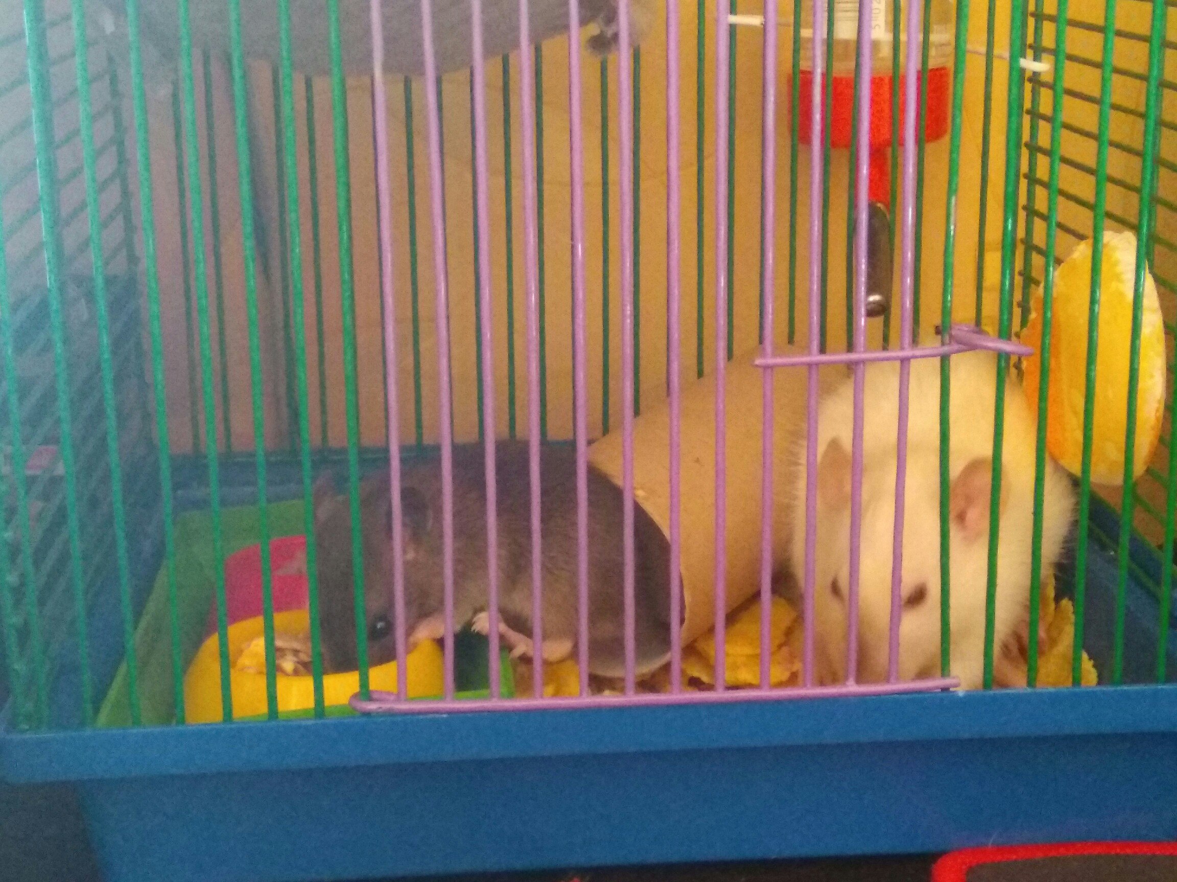 Jey, присматриваемся к двум претенденткам на неё , решаем кому лучше будет отдать малышку .. сердцем думали даже себе оставить но головой понимаем,что не будет у нас возможности уделять ей должное количество внимания для крысиного счастья да и постоянная опасность оказаться во рту то у котов то у собак - ну вдруг кто-то что то пропустит не досмотрев дверь не до конца закроет и всё, конец!