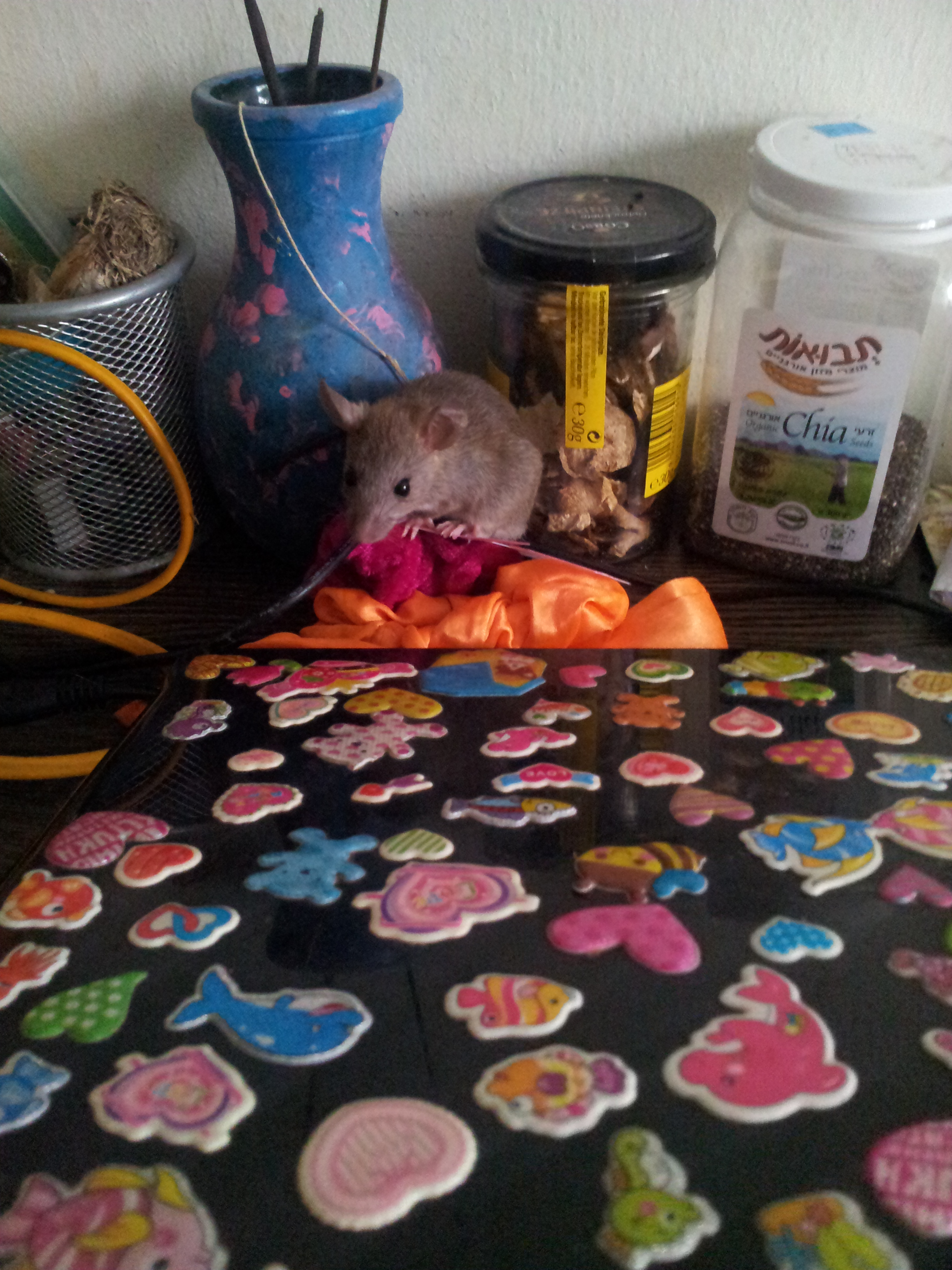 сейчас срочно ищу ему друга и никак не выходит, в магазине есть взрослые крысюки и розовые креветки, в лаборатории тоже сейчас только взрослые. обращалась к месным активистам, пристраивающим лабораторных животных, они меня кажется в черный список записали за попытку взять девочку к мальчику. потом почитала их устав и поняла, что крысёнка мне бы всё равно не отдали, потому что у меня клетка в высоту меньше 90 сантиметров. вот так у них всё серьёзно, оказывается.