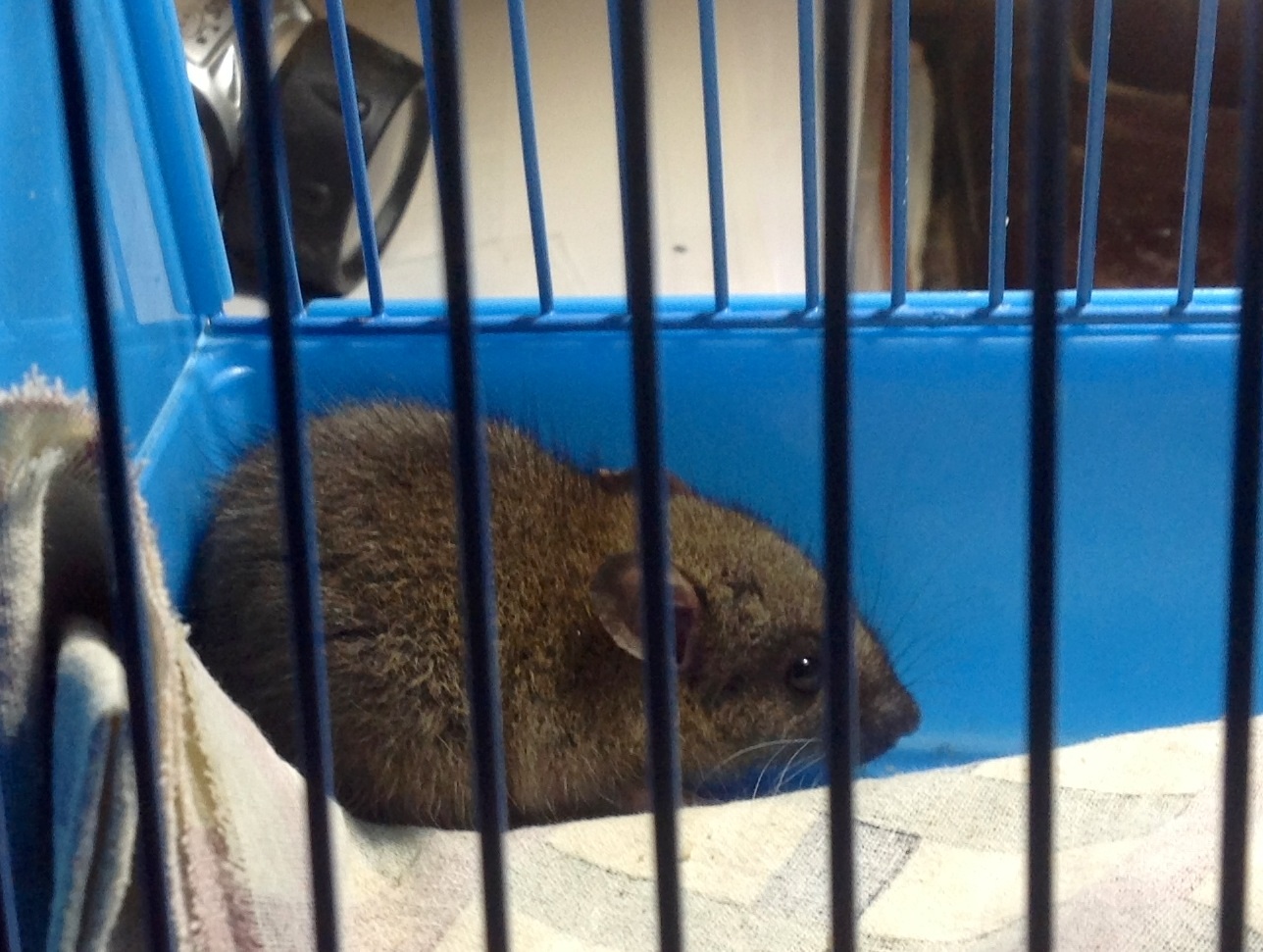 Крысёнок некоторое время провел в бочке с холодной водой. Барахтался в ней от 1 до 6 часов. Возраст крысёнка - примерно 1 месяц. Вчера вечером чихал, сегодня появился насморк. Хрипов в легких пока не слышно, дыхание ровное. Активный, температуры нет, кушает хорошо.