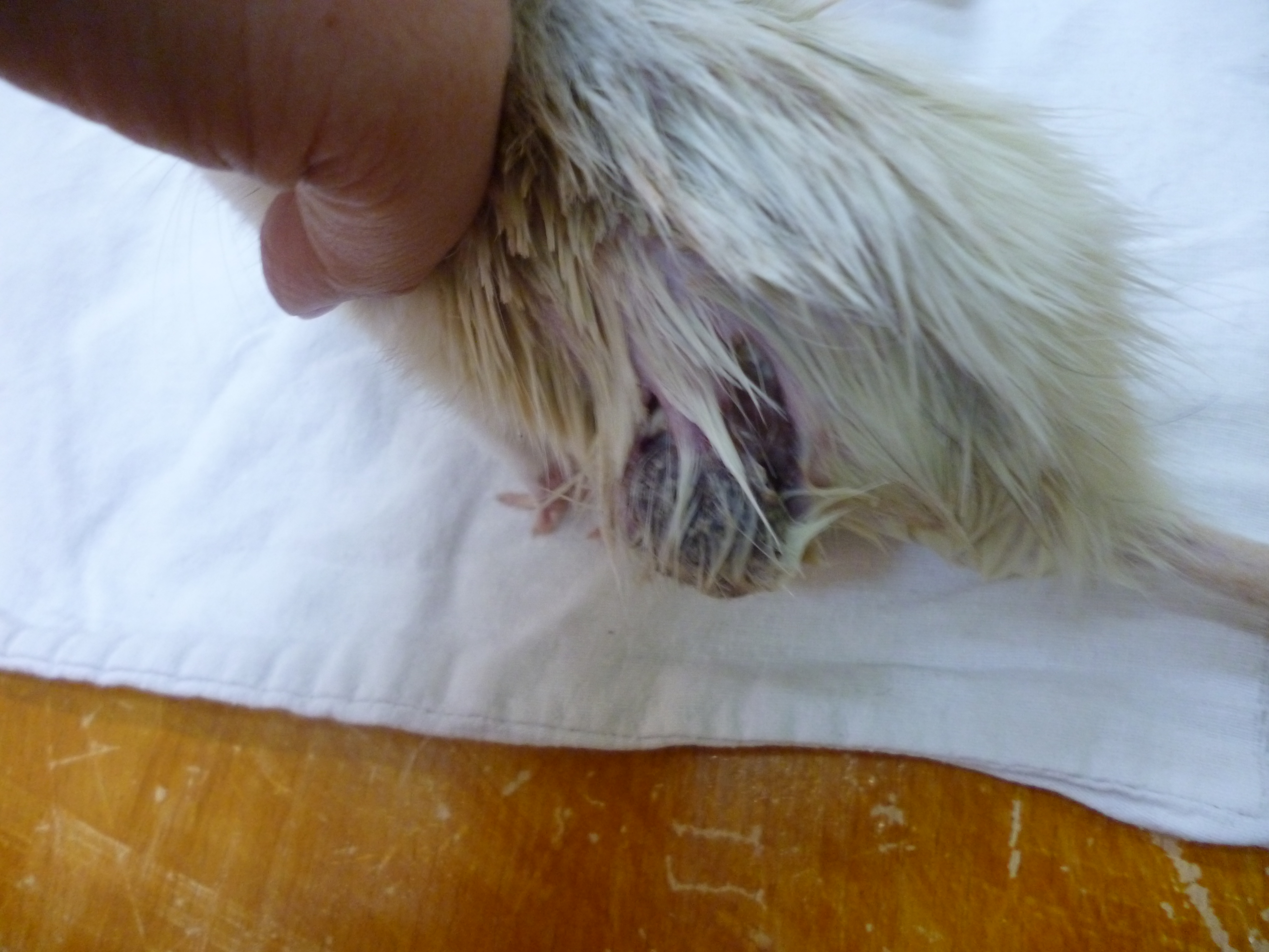 У второго крыса дырка довольно большая, внутри нее можно ватными палочками смазанными левомеколевой мазью прочищать. Мазь замедлит заживление, но зато прочищать будет удобнее, пока дырка не затянется.