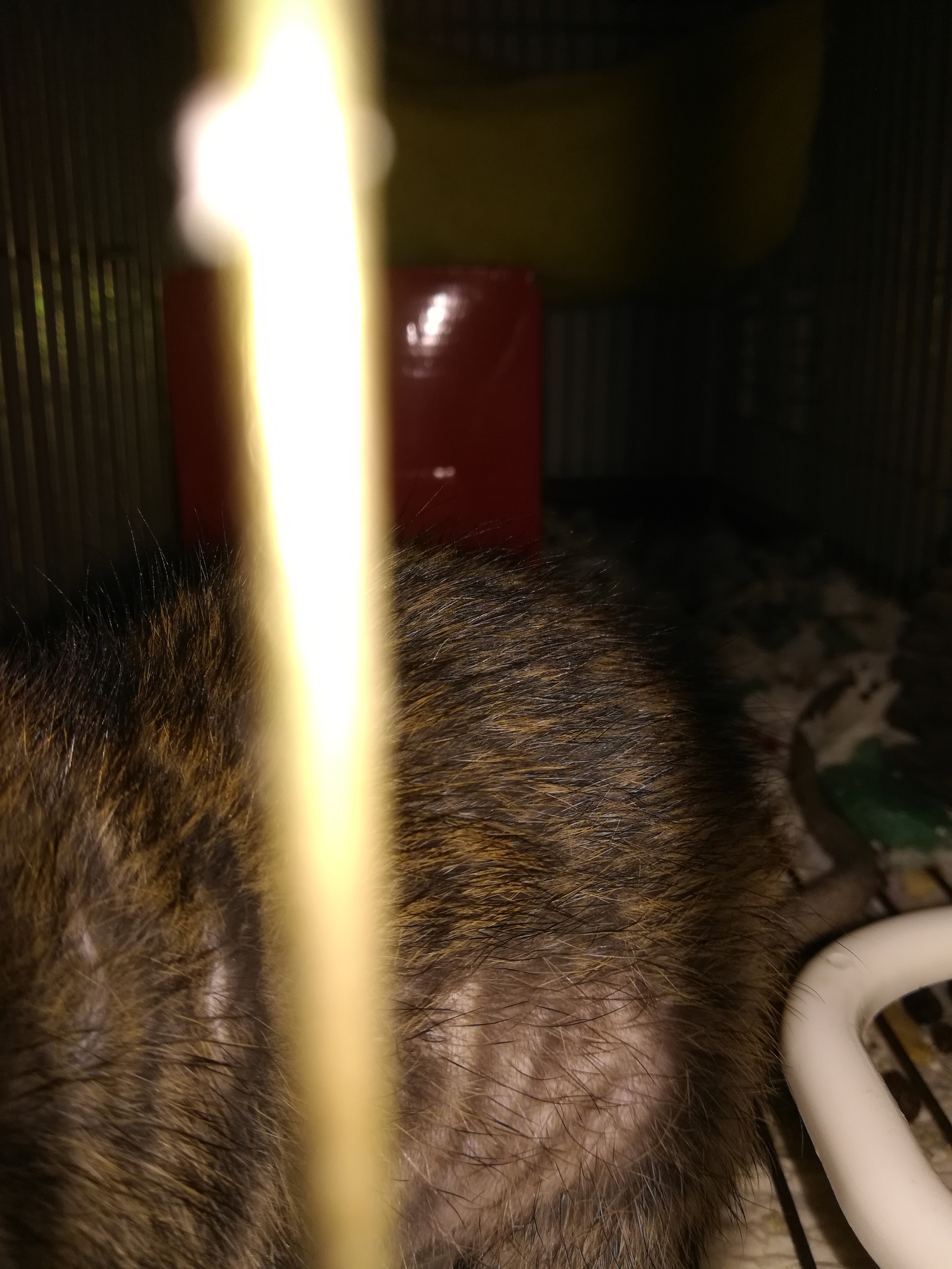Расчёсов на коже нет, как и других признаков старости. Двигается и кушает, как обычно. Когда мне удастся сделать нормальное фото, - выложу. Последние недели 3 я в поддон вместо опилок насыпала специальный наполнитель для кошачьего лотка с запахом, но в клетке сверху поддона решётка и ещё наполнитель закрыт бумагой. Т,е. аллергия вряд ли, да и лысеть он начал раньше, уже 2-3 месяца как.