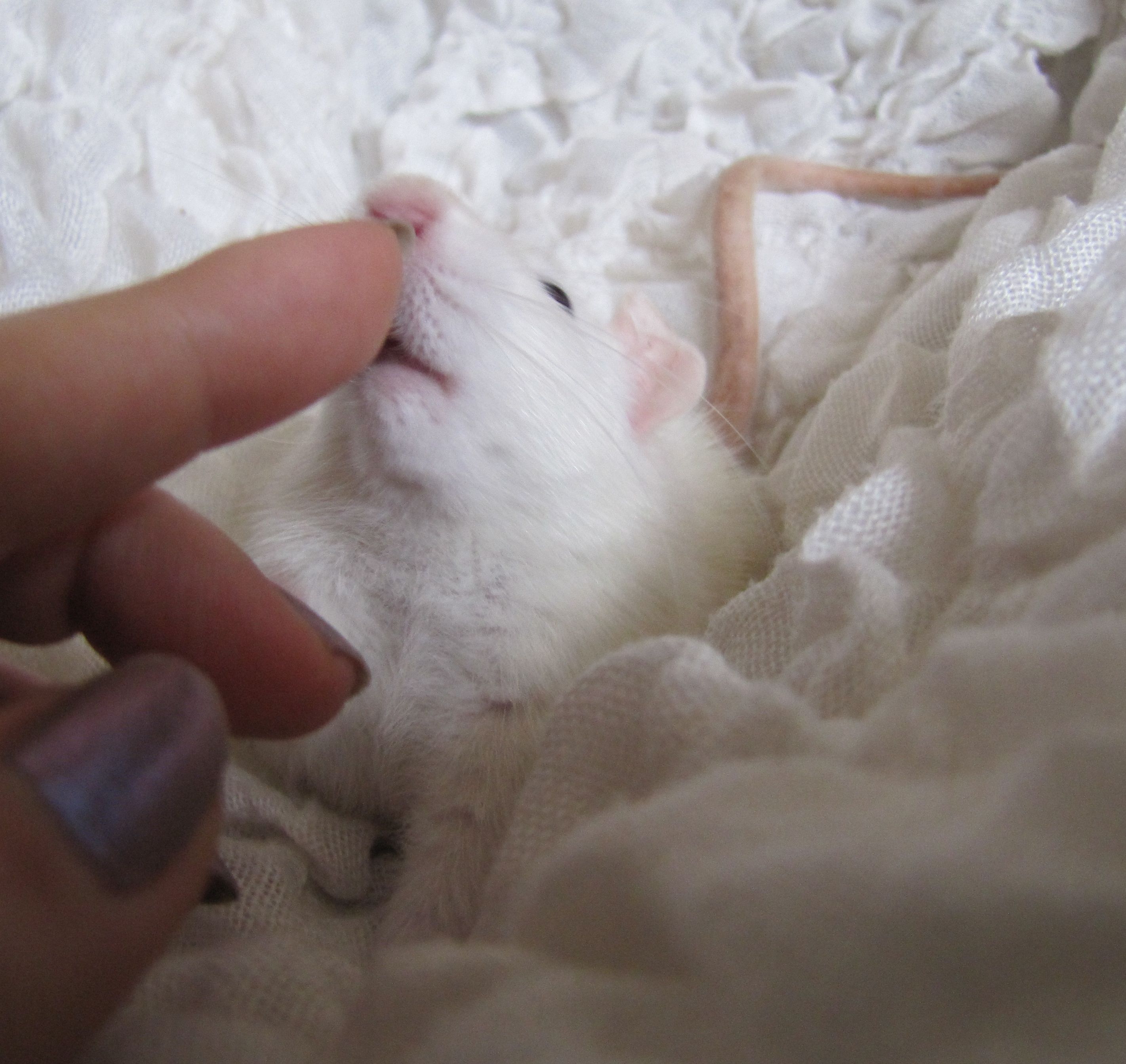 Характер: Ух, а не характер. Пасюк (в хорошем смысле слова), умело замаскированный под вистарочку. По приезду обрадовалась просторной клетке и вкусной еде, а тут ещё и выгул, и вкусняшки, которые надо непременно стырить, уничтожить, а то, что не влезло в желудок, запрятать и позже уничтожить. И традисканция вкусная... была. И под шкафом жить удобнее, и еда отсюда ближе и доступнее. И детей тоже бы под шкаф, там темно и никто на них не пялится. Уберите руки, глупые люди, крысочке виднее, как ей комфортнее. И всё в таком духе.)