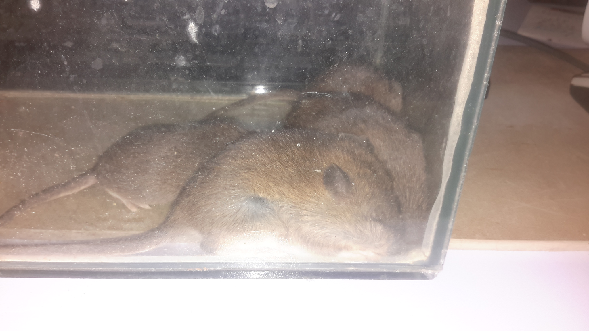 В аквариуме, если он узкий и высокий, будет плохая вентиляция - это опасно. Из крысиного имущества ничего не осталось? Хотя бы переноска?