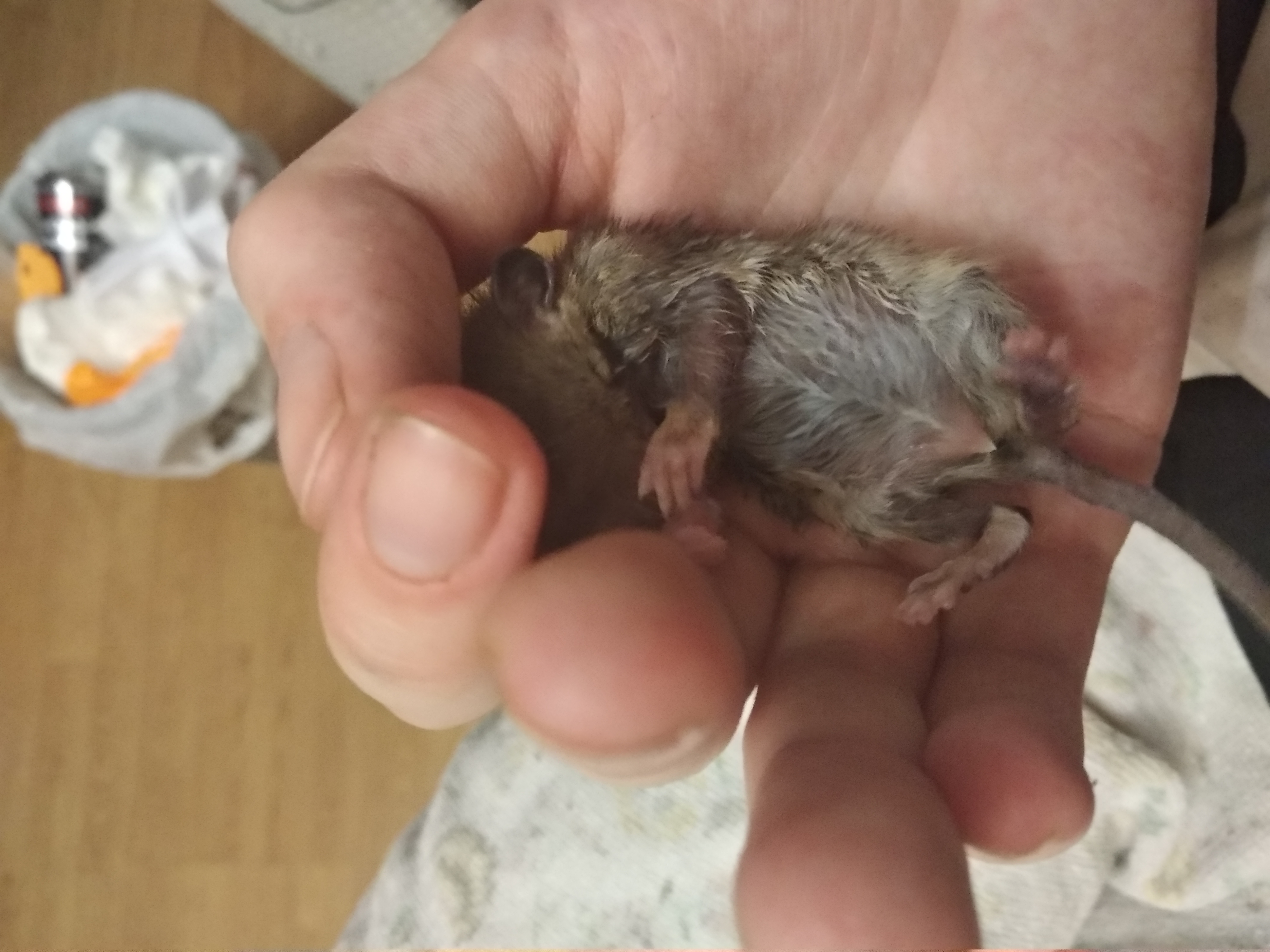 Уже можно его переселять в небольшую клетку для хомяков или мышей, с маленьким расстоянием между прутьями.