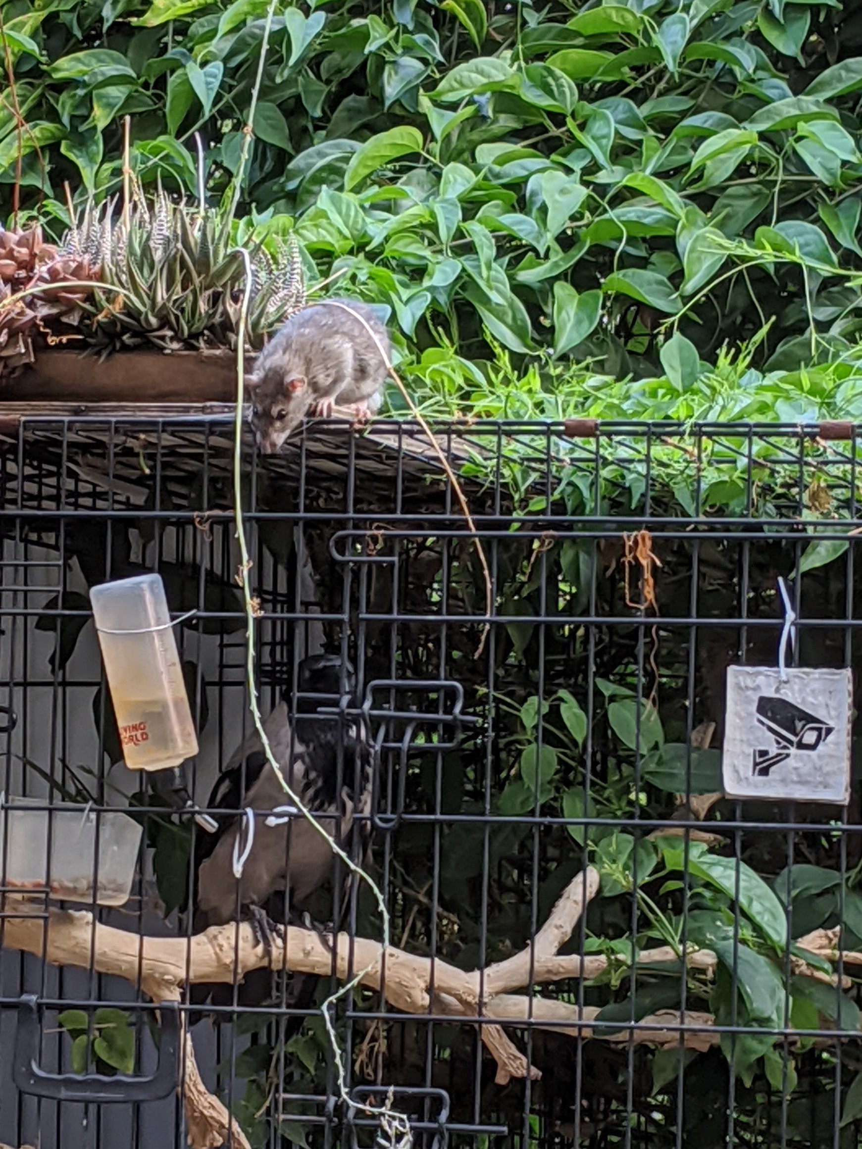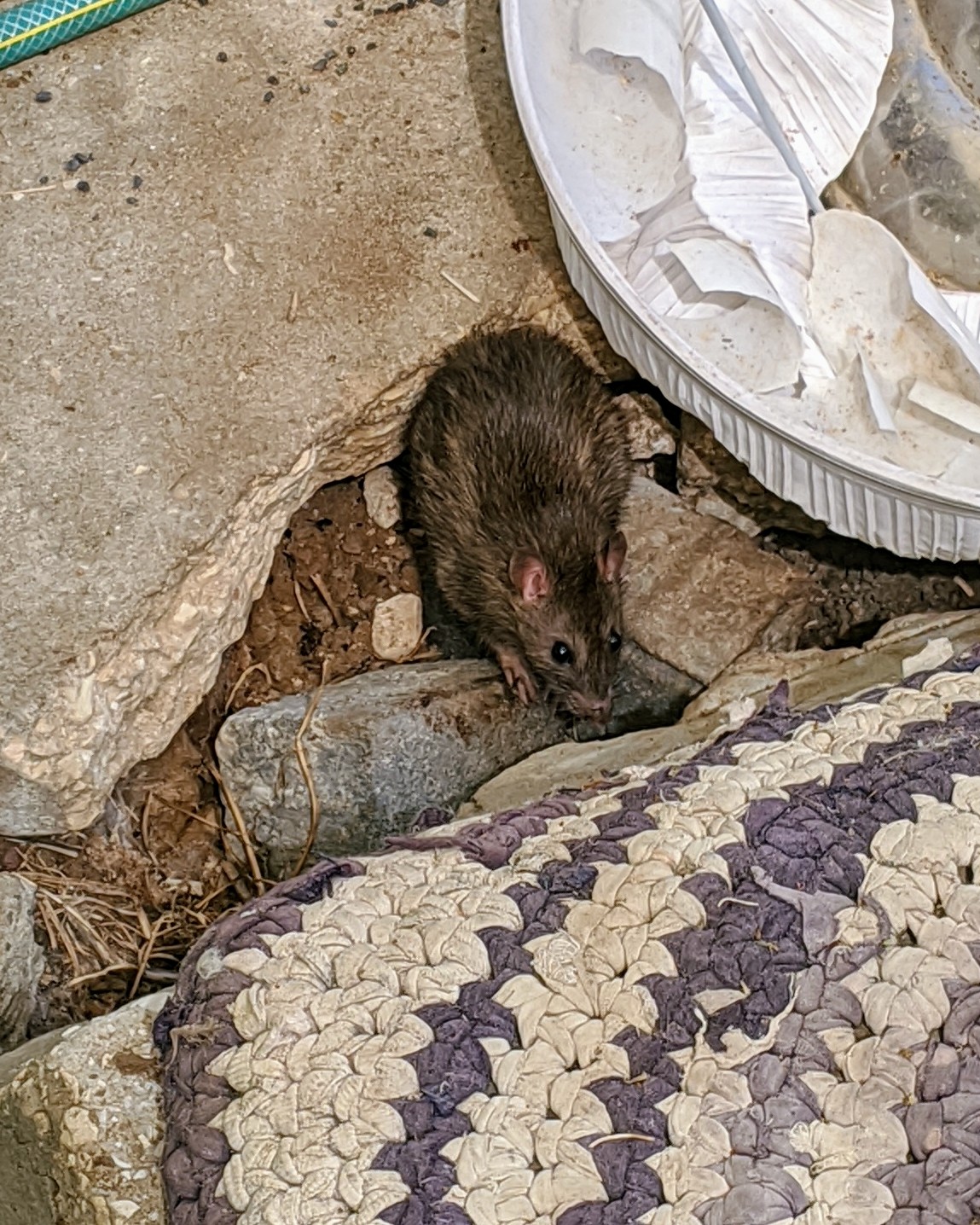 а кто это у меня во дворе сидит и рыдает с набитой мордой? пытается залезть в щель под бетоном, там у меня дикие пасюки живут и его не пускают. а сам вроде на раттуса похож