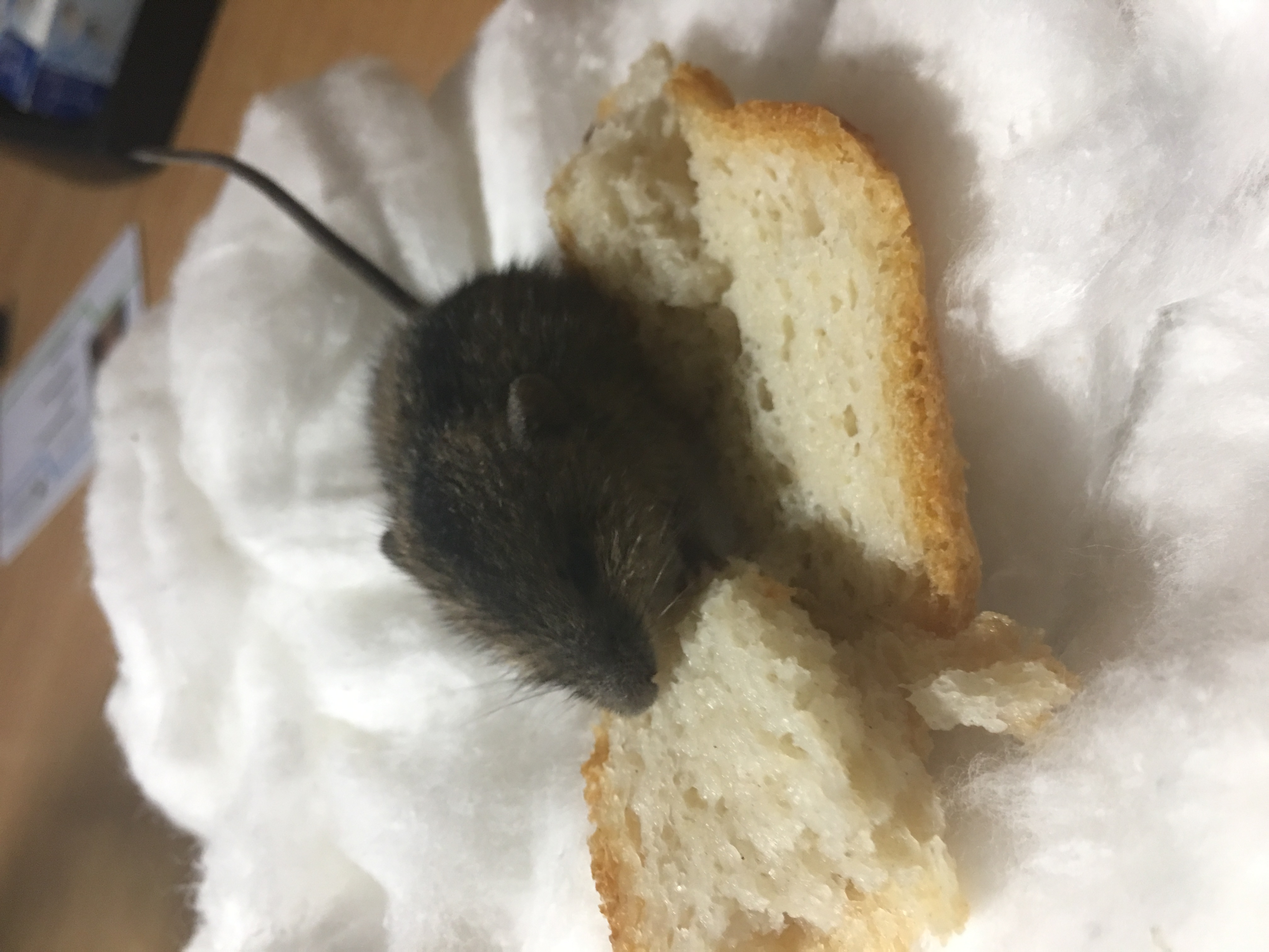 Хлеб и вату срочно убрать! Положите ребенку мягкие тряпочки и бумажные салфетки. Кормить кормом для крыс и мышей (возьмите любой в зоомагазине), детскими пюрешками с мясом, творожками, йогуртами, фруктами, овощами и различными детскими кашками. Воду обязательно в отдельной мисочке. Можно запарить гречку или овсяную кашку, если вот прямо сейчас нет никакого корма для грызунов.