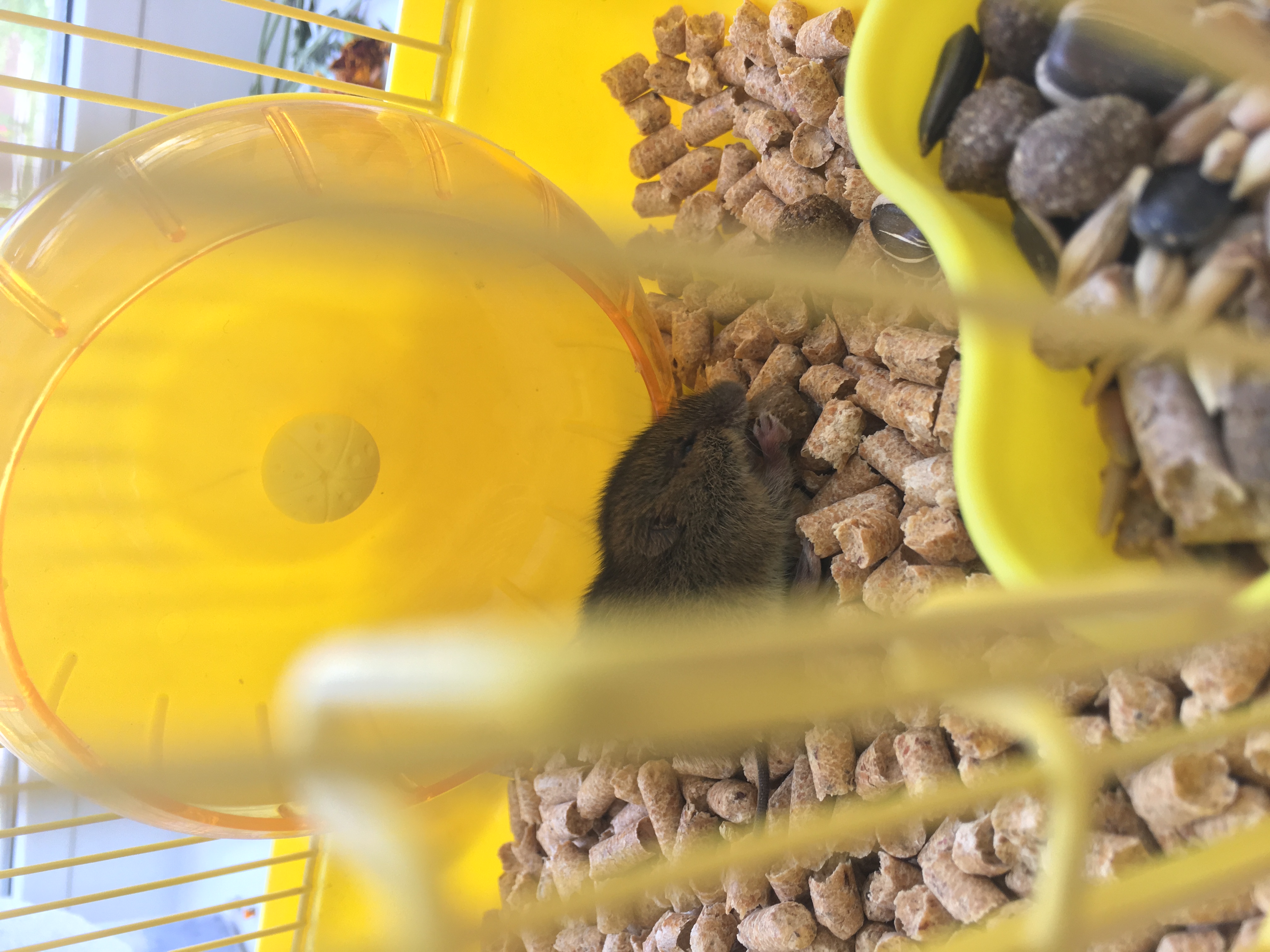 Сегодня малыш уже более активный. Купили корм для мышей и крыс, вроде кушает. Не уверена что сможет пить из поилки, возможно нужно из шприца поить пока? Викасол тоже купили, будем поить