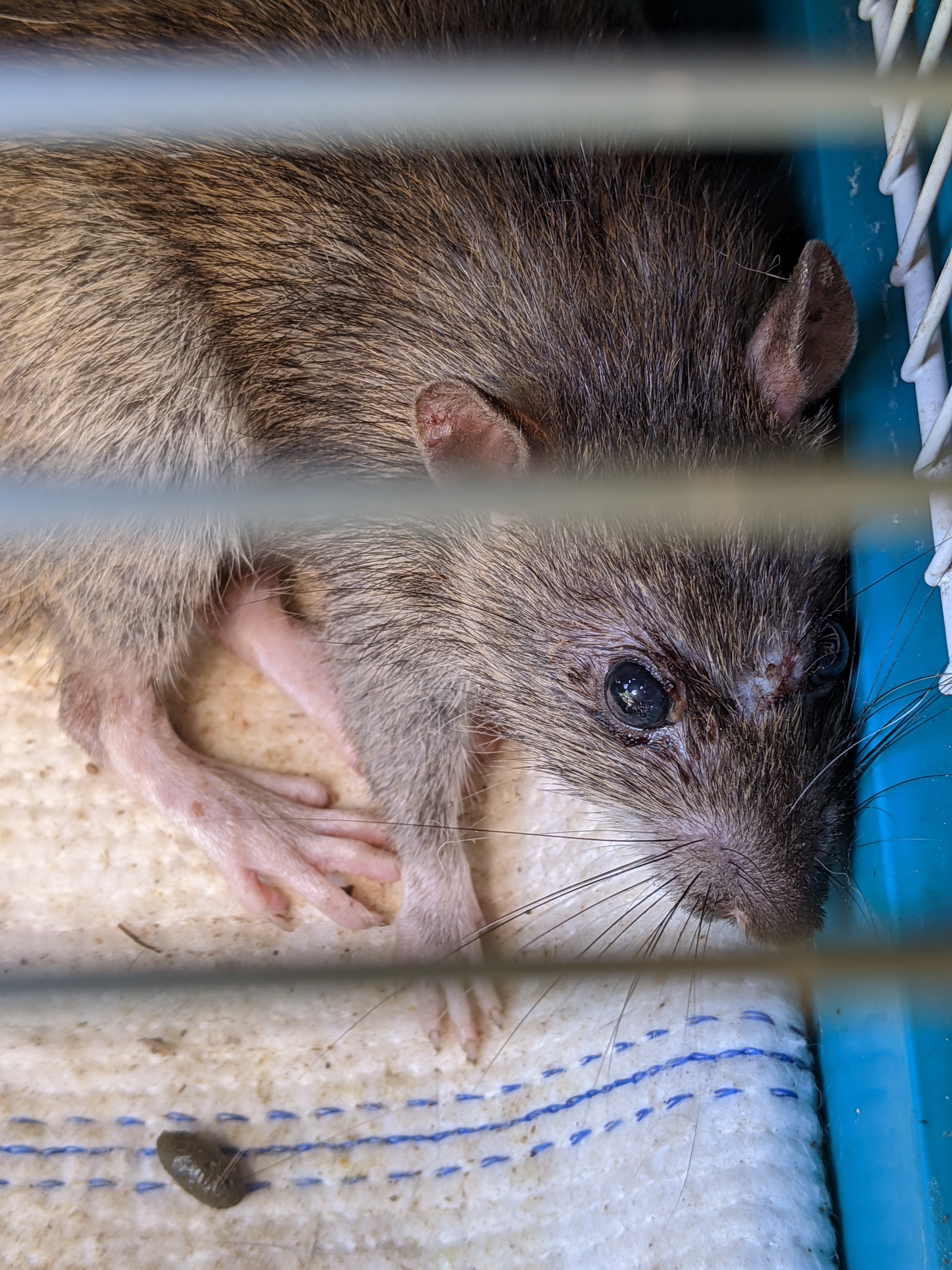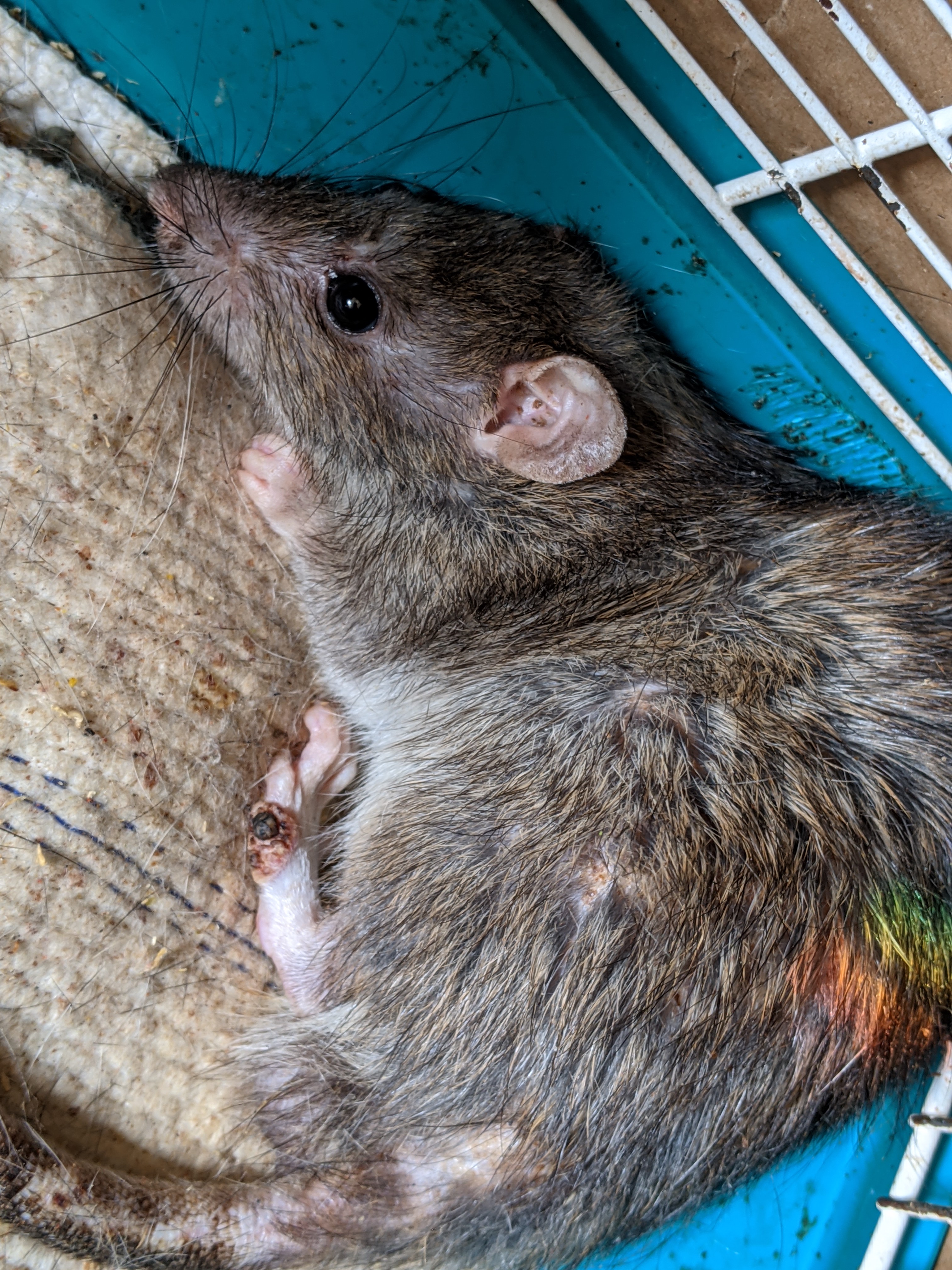 из того что успела рассмотреть - эта рана на ноге странная, если б на человеке, то очень похоже на лешманиоз. крысы таким заражаются?