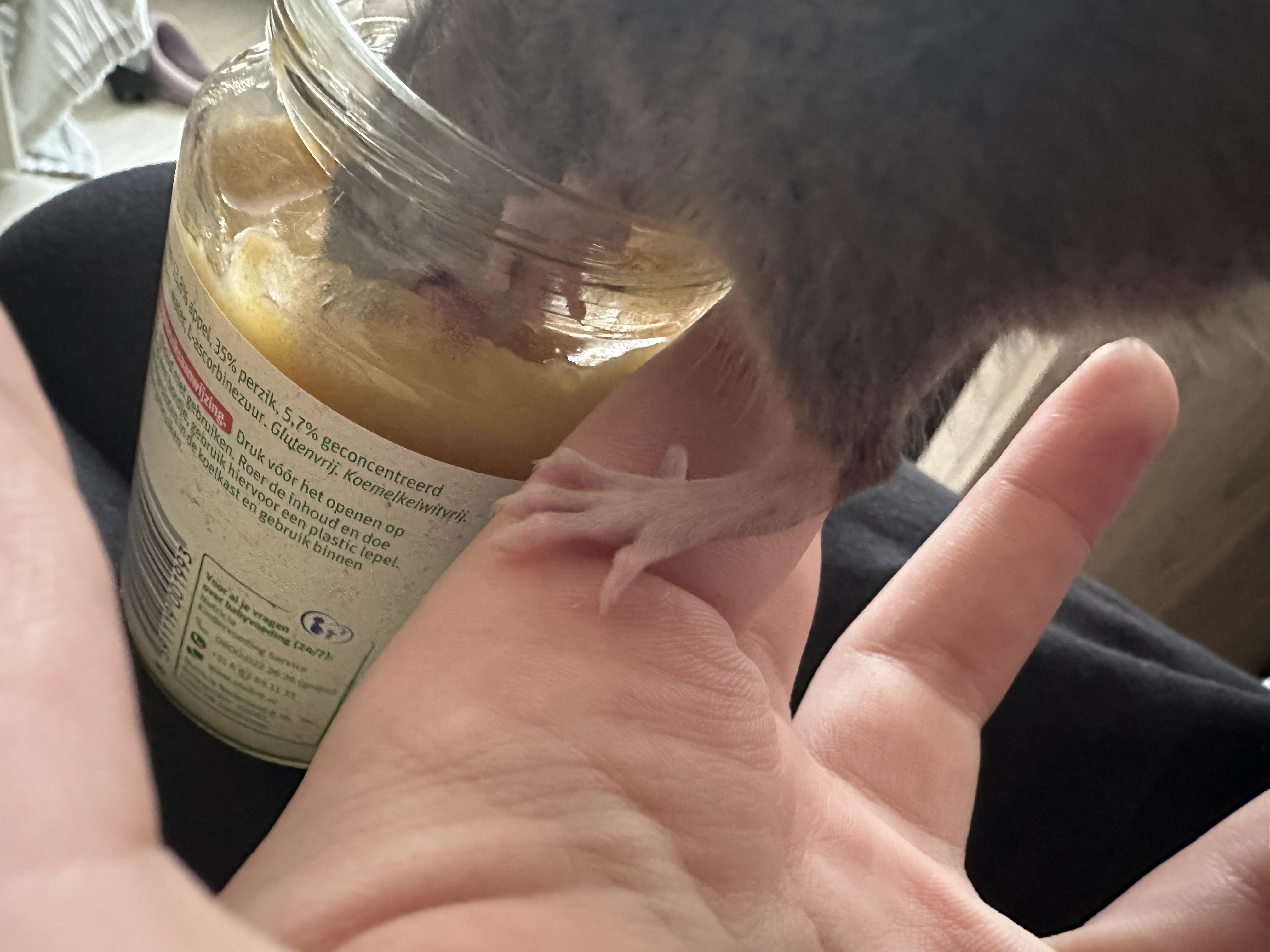 И вот назрел вопрос: она черезчур спокойная. Настолько, что может просто заснуть на мне. Вроде бы пьет, кушает, умывается, но меня беспокоит этот момент. Также я не понимаю, какой у нее может быть возраст, что это за подтип. В клетке особо не активничает, просто сидит, спит, немного поела детской пюрешки. К колесу безразлична.
