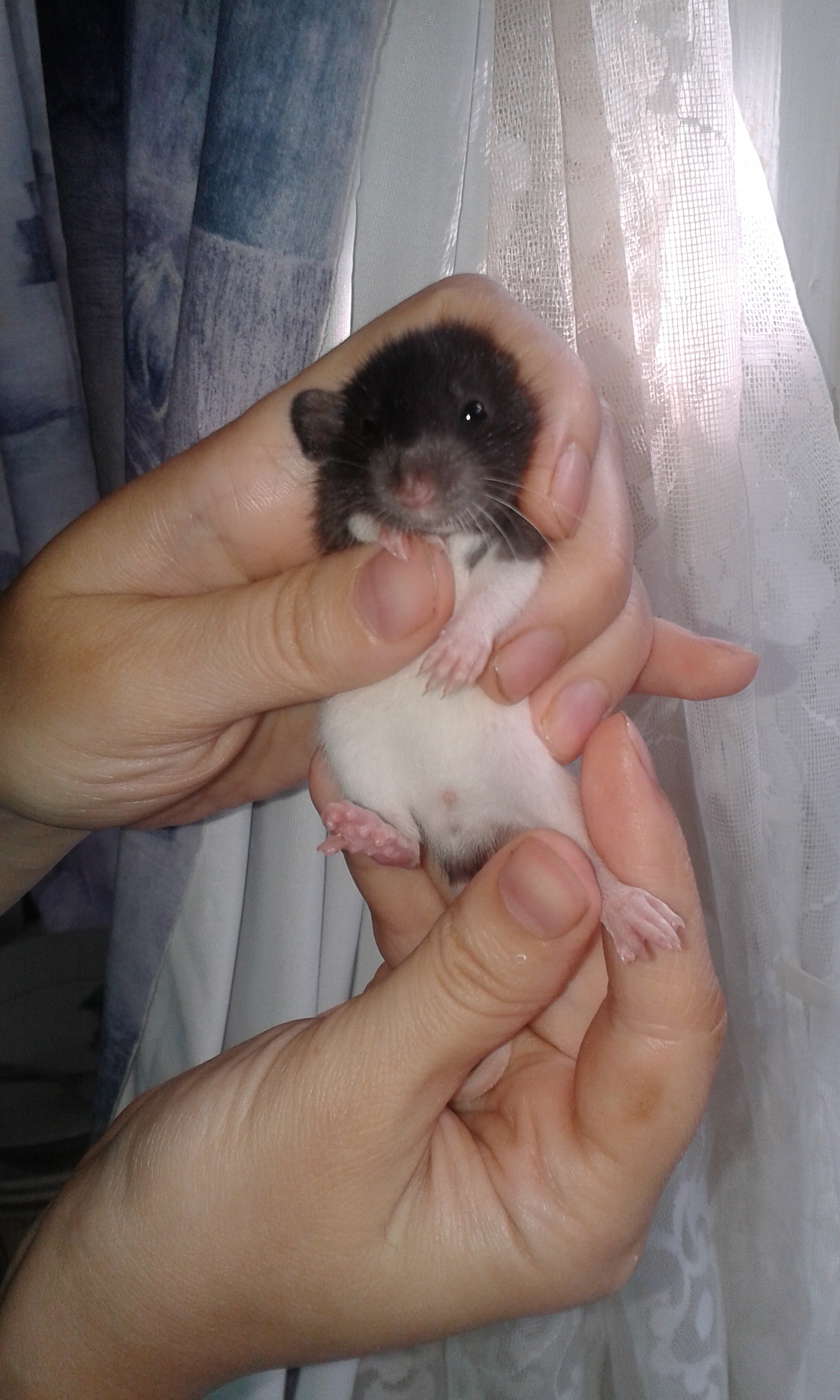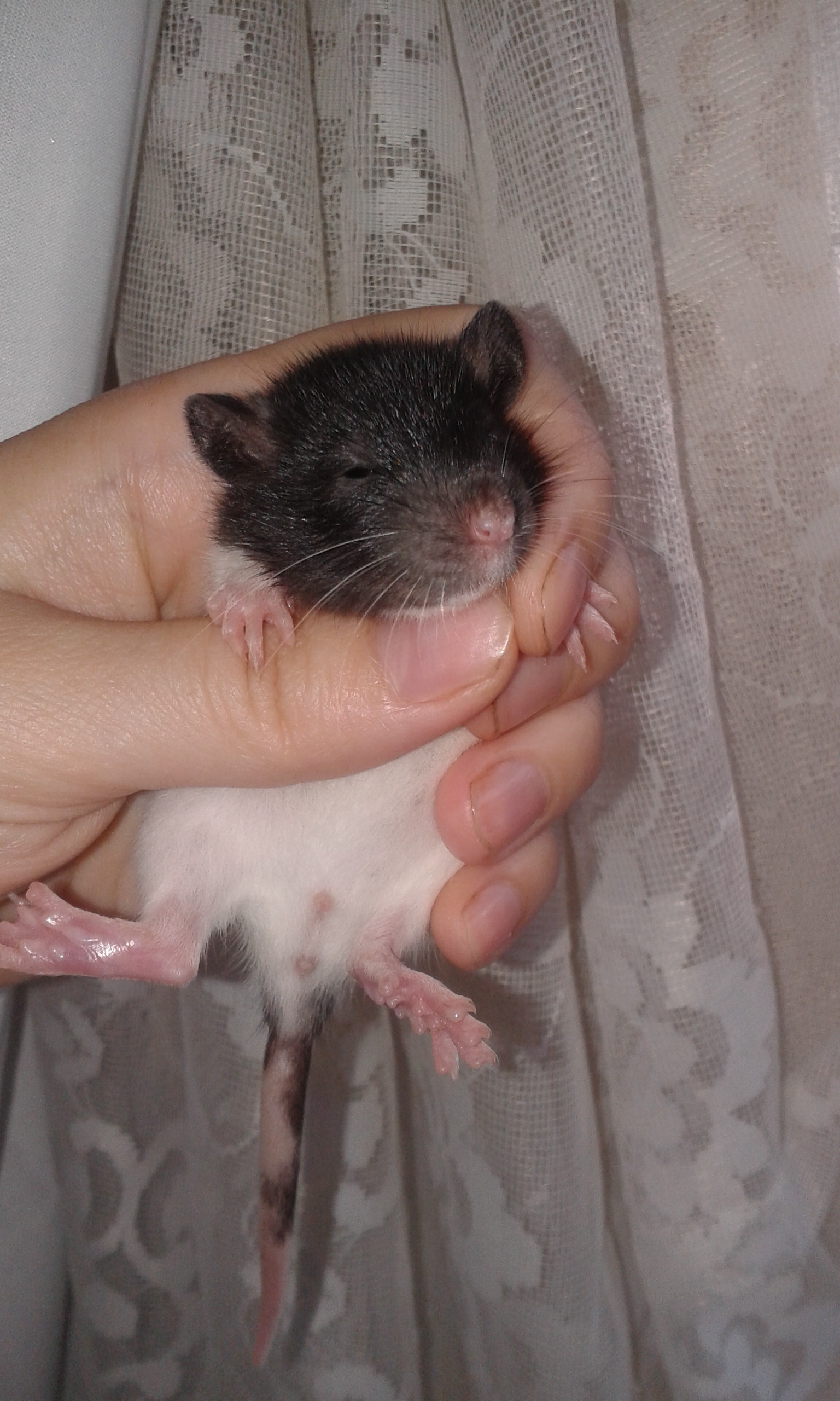 Отдаются в добрые руки крысята, рожденные от крысы купленной в зоомагазине, для подселения к стайке девочек. Крыса расцветка хаска-серая, когда покупали было 2 месяца. Родилось 13 крысят 10 июля. Весь помет остался жив, всех выкормила, никаких проблем не было, глазки крысята открыли в 2 недели все в один день. Крысята имеют окрас хаски и капюшон, все черного цвета, кроме одного мальчика . Ушки: двое дамбо, остальные стандартные, шерсть стандартная.