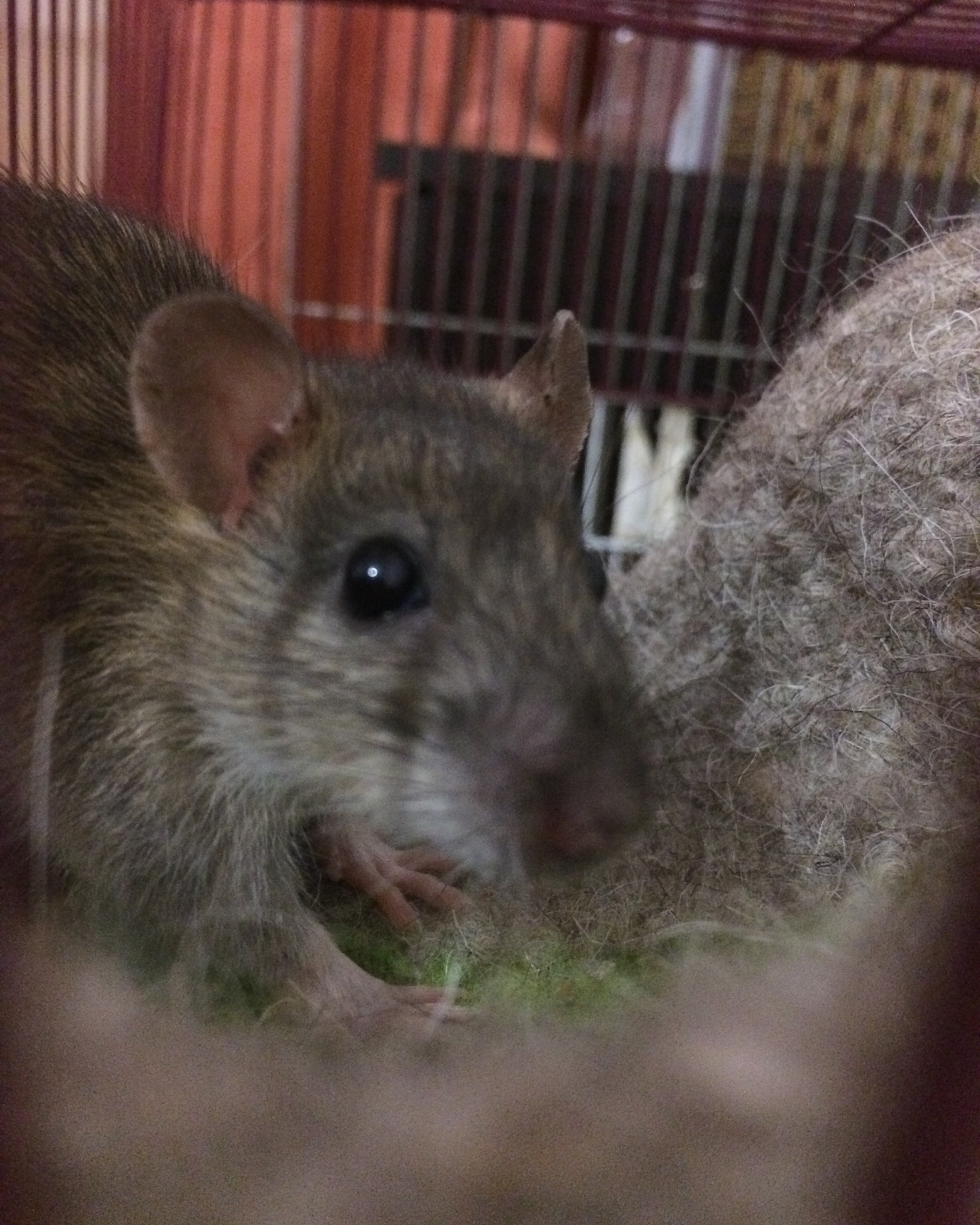 Сейчас пася у меня. Месяца 2-3. Мальчик. Оочень любопытный, аппетит отличный. Его любимое занятие-наблюдать из гамака за всем происходящим вокруг. Это странный пасюк ничего не грызет(ни гамаки, ни даже прутья!). Но очень любит грызть сепию и минеральный камень. Уже научился брать вкусняшку из рук через прутья(раньше очень боялся, сидел забитый в домике). За детскую мясную пюрешку жизнь отдаст! Мальчик ищет заботливые руки с правильным уходомПасюк ищет заботливые руки(екб)