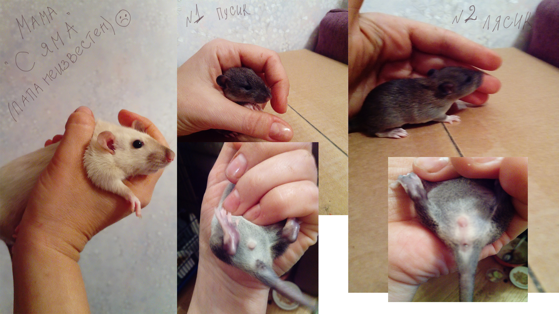 Разместите пожалуйста, фото мамы и укажите общее количество крысят, сколько мальчиков и сколько девочек.