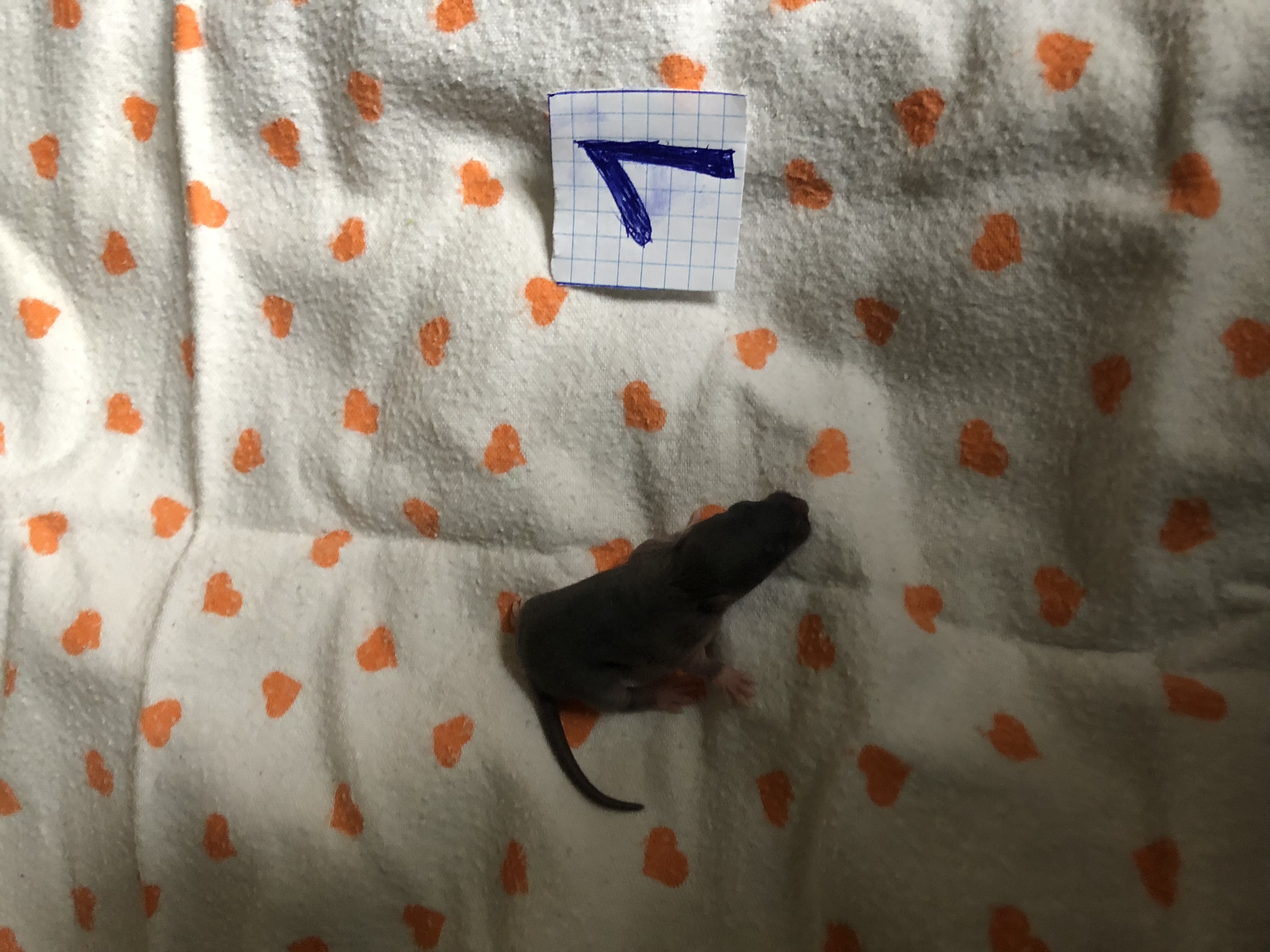 Посмотрите внимательно на животик каждого крысенка. Сейчас очень хорошо видно у кого есть соски, а у кого их нет. У девочек есть соски, у мальчиков нет.