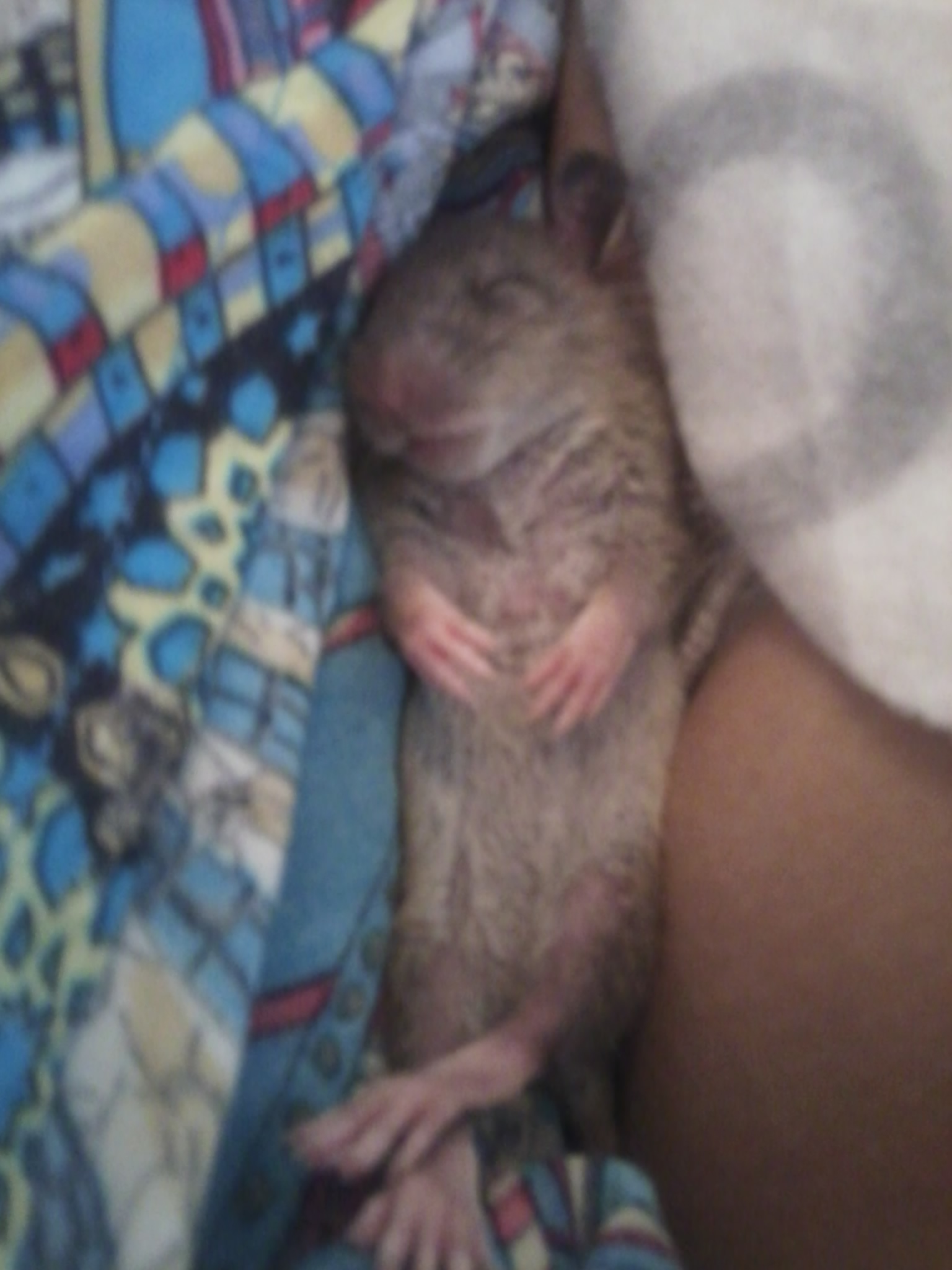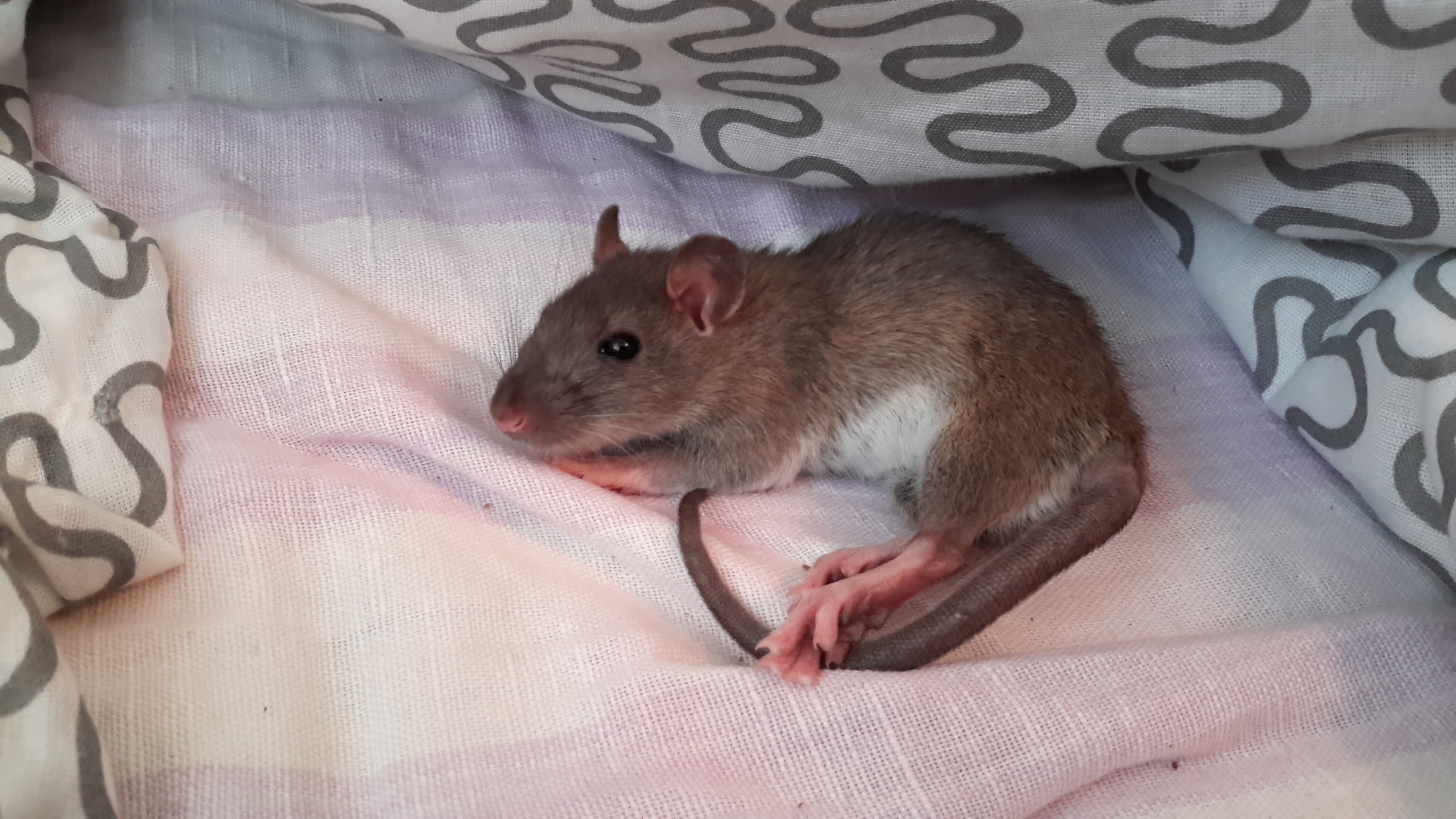 Дэв, спасибо. Буду держать себя в руках, а то так жалко её бывает. Со мной она резвится , играет, руки лижет и выкусывает ,радуется жизни вовсю, а с крысами - как на войне, залипнет в одном углу и еле дышит. Сегодня утром поднесла её в ладошках, старшая на неё опять лапками , Юня вскочила на задние лапки и ручки вверх , стоит столбиком- не шевелится.....и смех , и слёзы....
