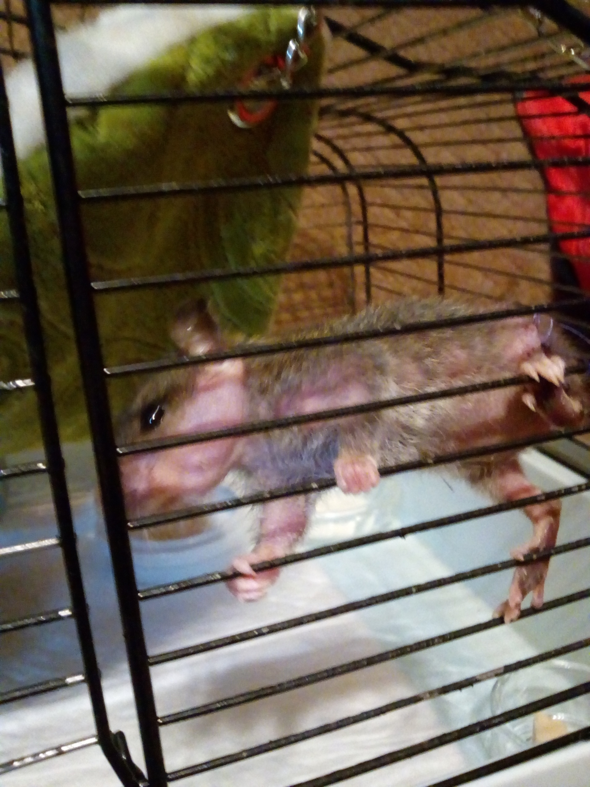 Надеюсь он наберет вес за месяц с хвостиком. Сейчас Степа набирает вес не плохо, уже больше 60гр. Если так он каждый день будет по 3гр набирать, то через месяц будет уже не менее 150гр. А там уже посмотрим - если не возьмут, то перенесем процедуру. Я тоже переживаю очень, пока он мелкий с подселением меньше проблем будет. А если вырастет, кто знает как девочки к нему отнесутся. Вдруг решат, что им мужик в клетке не нужен... а вторую клетку мне нельзя никак