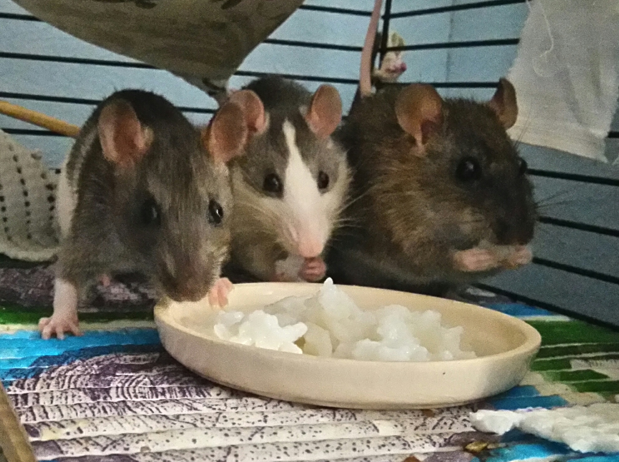 Здравствуйте)) А может пася быть не главной в девичьей группировке? Поскольку клетки стоят на виду в комнате, я много наблюдаю за жителями и последнее время у меня стойкое ощущение, что в женской банде заправляет хаска. Она даже пытается цапнуть знакомых за палец, если суют через прутья, хотя с нами такого никогда себе не позволяет. Но чуть что - именно её фейс оказывается на переднем плане, а остальные маячат за ней. И ещё интересно - пасюки и декорашки издают разные звуки? Во время груминга декоративные мальчишки и девчёнки, которых выкусывают, попискивают (надеюсь от удовольствия