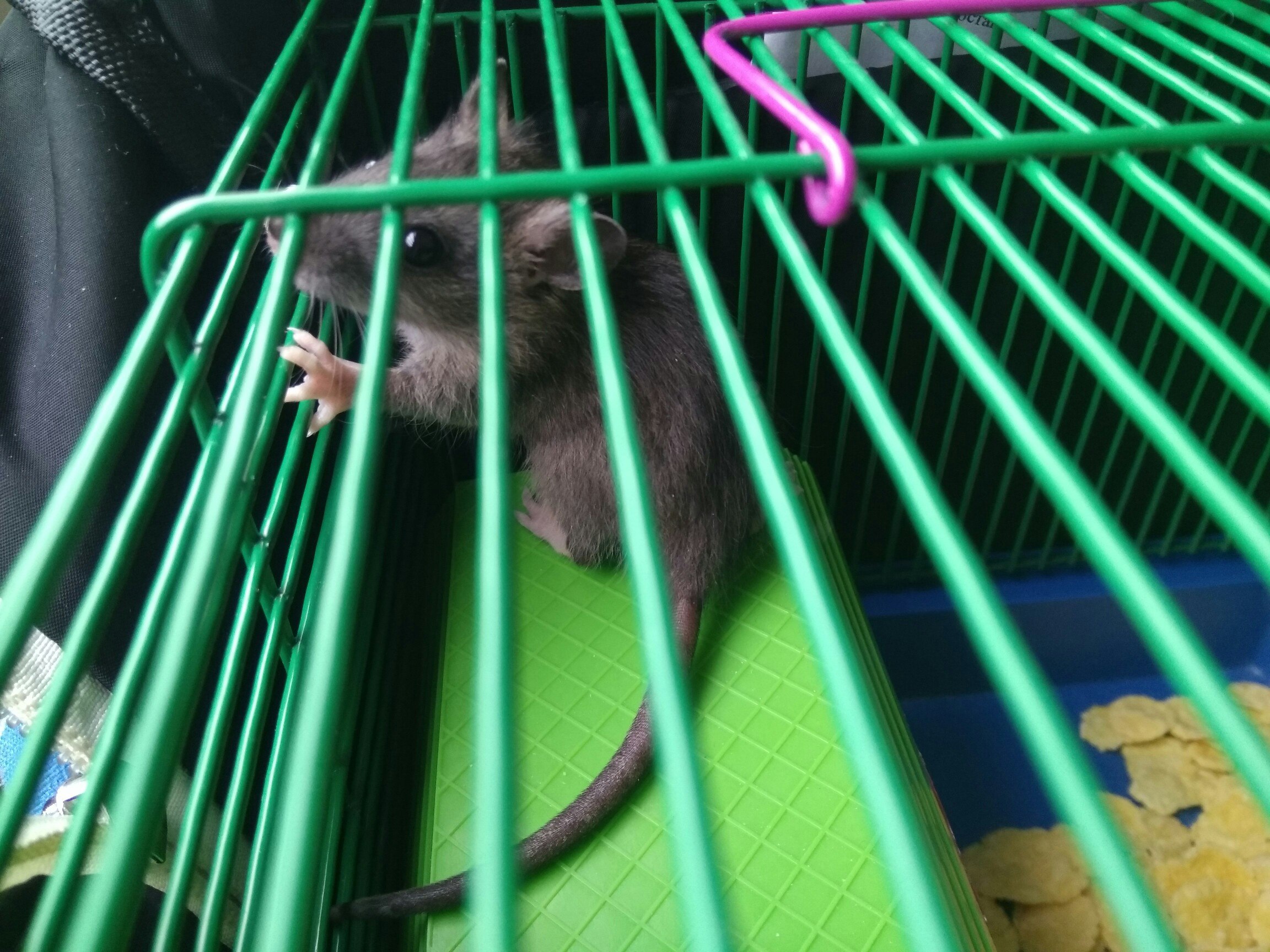Jey, присматриваемся к двум претенденткам на неё , решаем кому лучше будет отдать малышку .. сердцем думали даже себе оставить но головой понимаем,что не будет у нас возможности уделять ей должное количество внимания для крысиного счастья да и постоянная опасность оказаться во рту то у котов то у собак - ну вдруг кто-то что то пропустит не досмотрев дверь не до конца закроет и всё, конец! ;,(