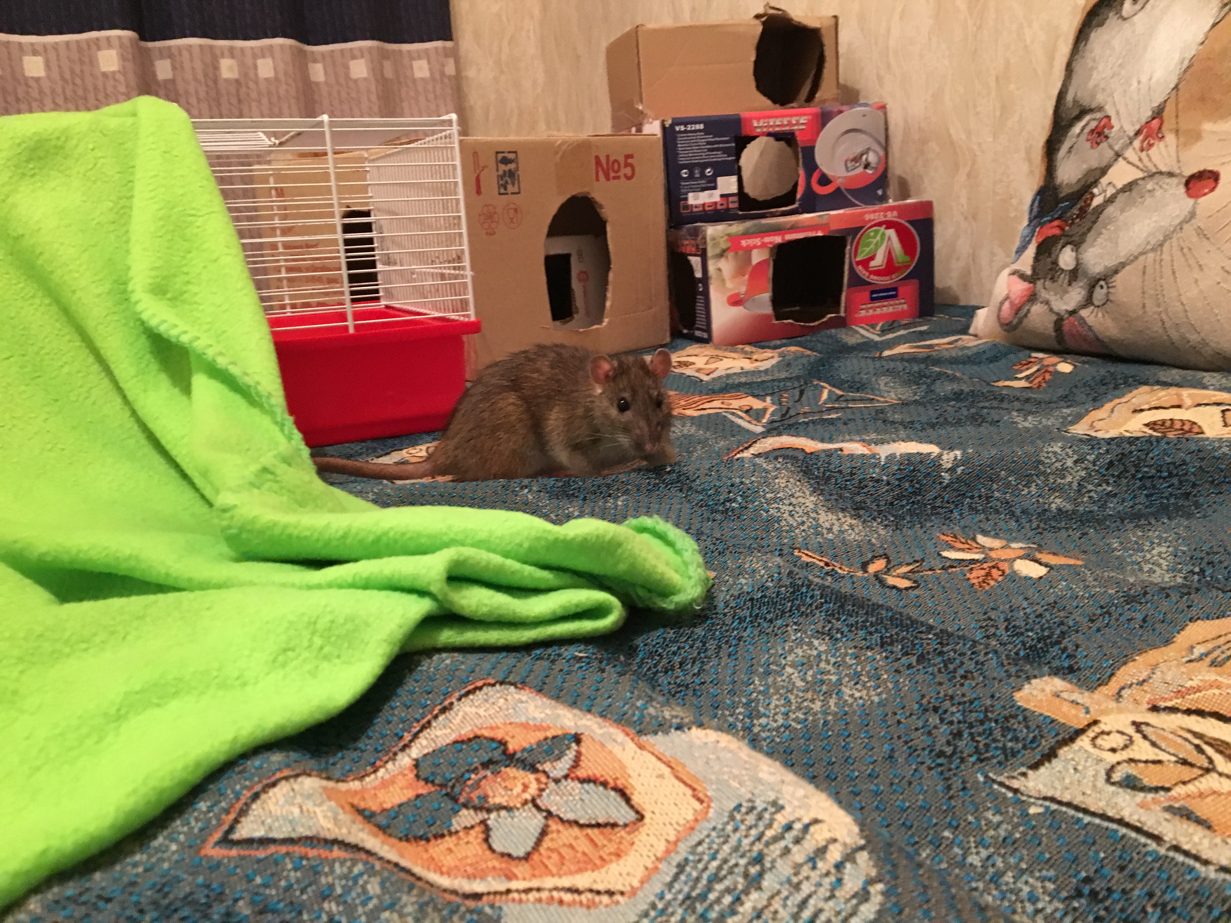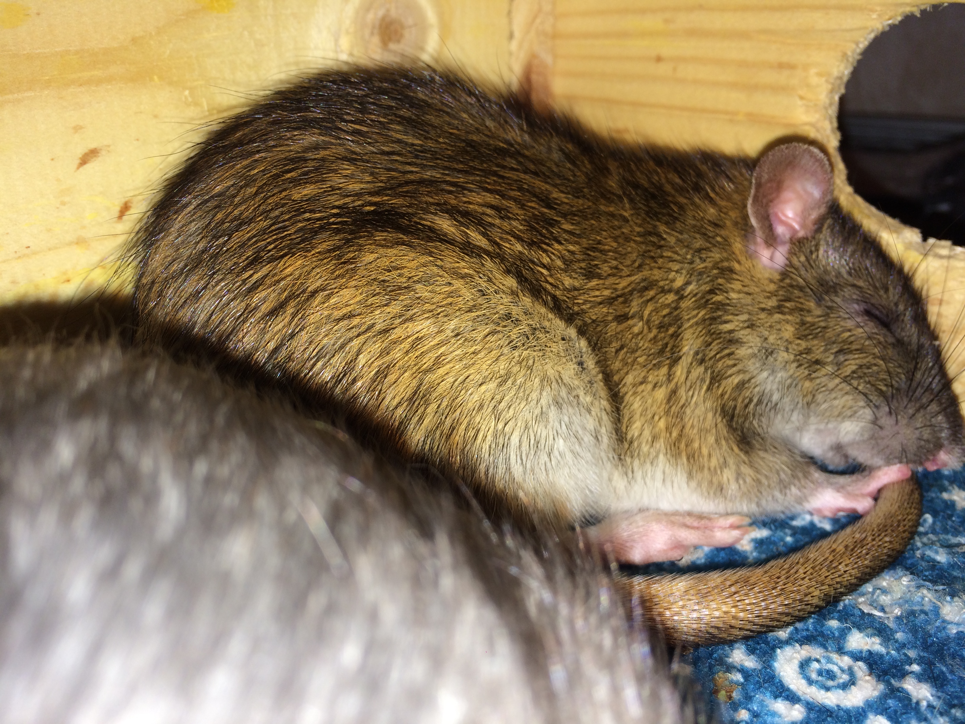 У нас все очень-очень хорошо и Пасенька стала очень понятливой, умной и условно ласковой крысой. В августе-сентябре я уезжала в Грузию, а крысодевочки были на передержке. Пася приняла Алену и брала у неё еду из рук, правда один раз все таки укусила.