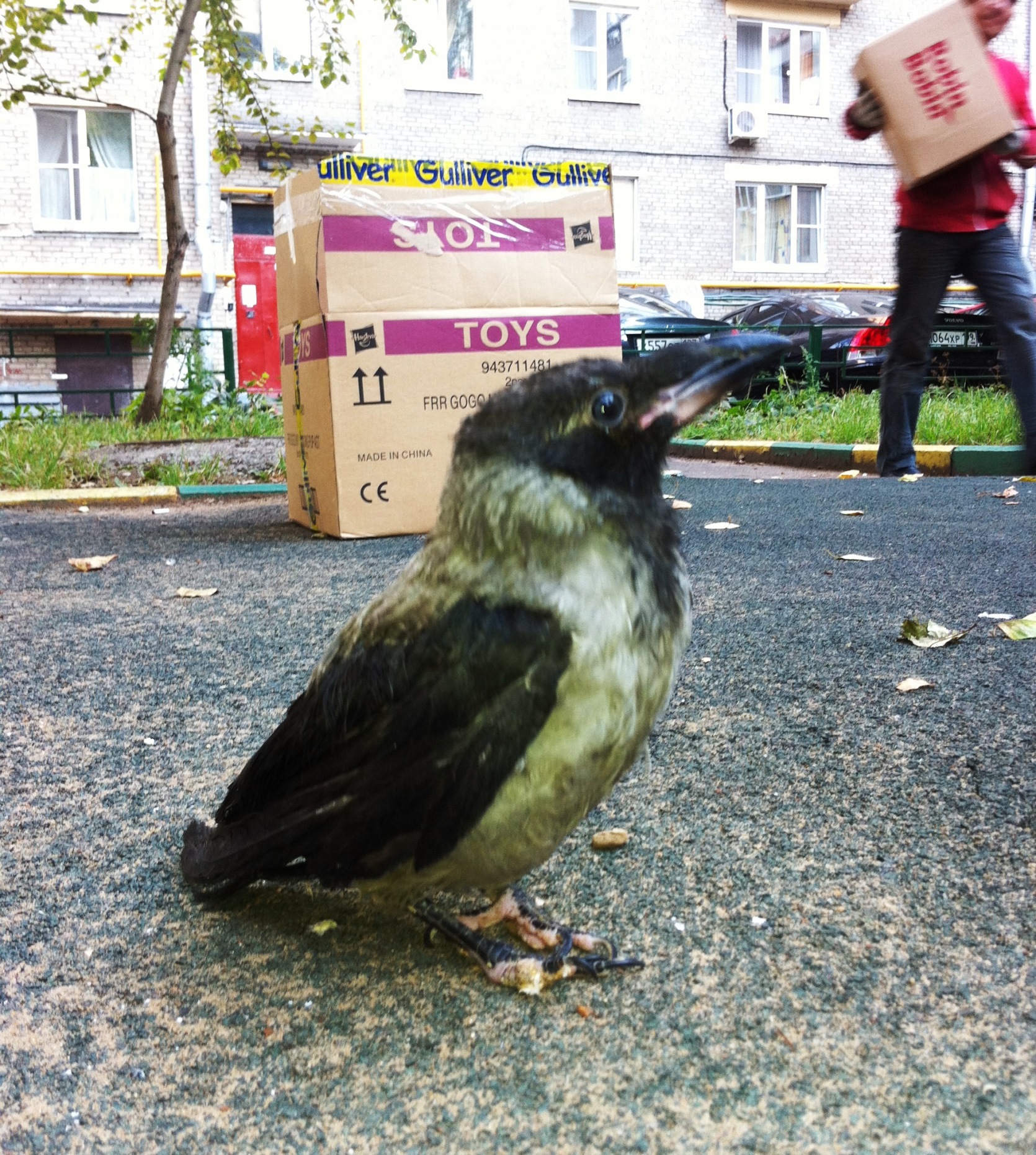 К сожалению все начилось с печального события. У меня с мая жила серая ворона, она выпала еще птенцом из гнезда прям, можно сказать, на меня. Оставить ее значило оставить на верную смерть, потому что двор полон кошек. Я ее подобрал, принес домой и стал ее выкармливат. Как оказалось потом, ворона ( я ее назвал Криволапой) была больной. Все лето я ее пытался выходить: вызывал орнитолога, ездил в клинику, давал лекарства, даже делал уколы, но Криволапа умерла.