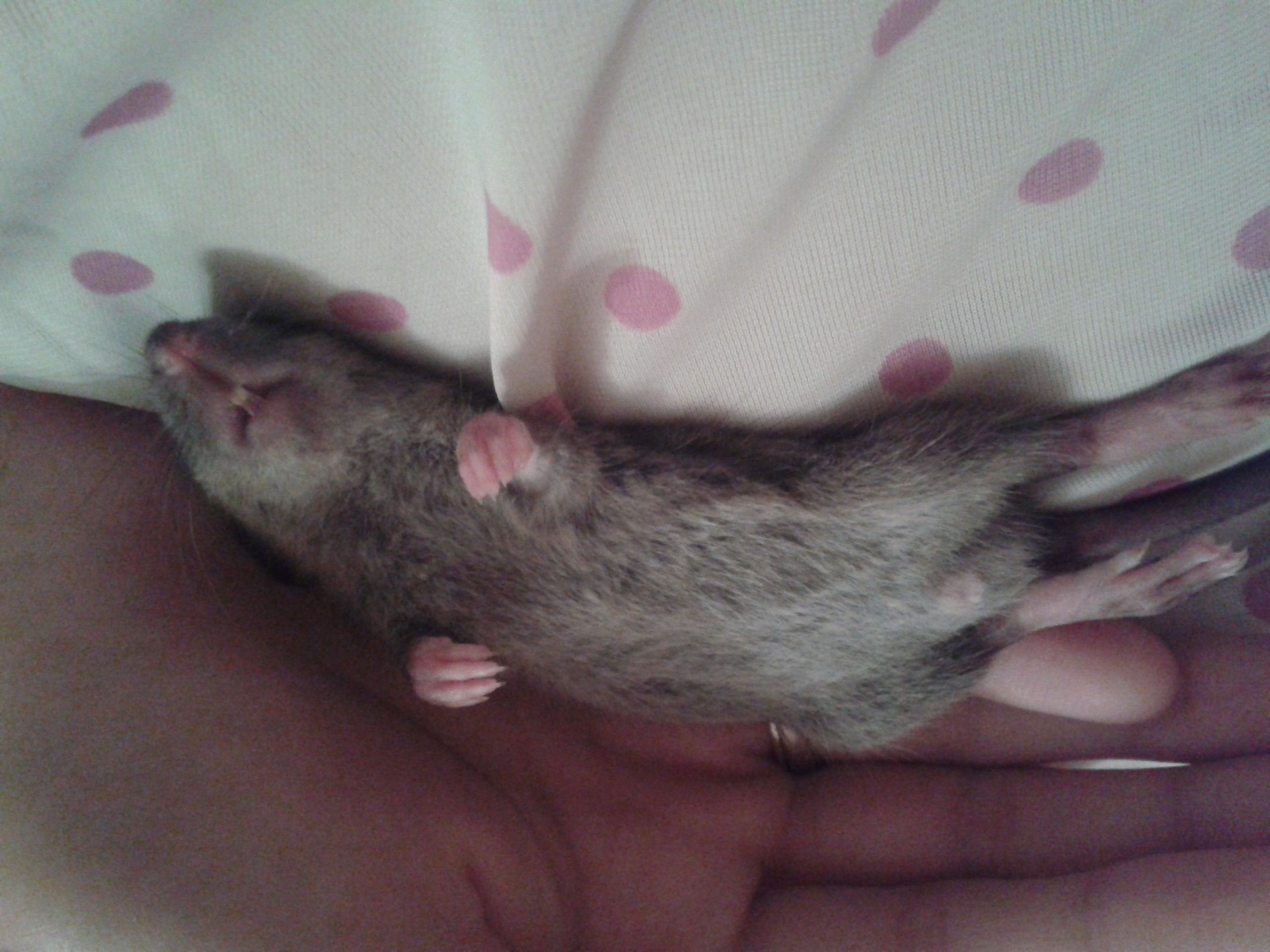 Мы дома. Оформлена клетка,разведена кашка,но Нильс совсем отказывается сидеть за решеткой. Залезает по шприцу на руку и и счастливо бежит на плечо. И так по кругу. В итоге, ну ее клетку..он почти жил на мне. Ел,какал,писал, спал,играл,дрался. На ночь все же приходилось пихать его насильно в "дом", тут же раздавалась дробь зубами по прутьям; "ну-ка..бы-стро..дос-та-ла...кры-са..ну-ка..сей-час-жееее". Ночью вставала каждые 3 часа, чтобы заварить новую смесь,и это невероятное существо с обиженным видом встречало меня непосредственно у дверки и моментально вспрыгивало мне на руку,и ну как тут быть..Мой организм понял меня и быстро заболел,устроил мне околокрысиный отдых,так сказать. Мне было очень плохо.и жутко хорошо одновременно. Я не могла выйти из дома(что не сильно меня огорчало),и вместе с тем не отходила от Нильса днями напролет.