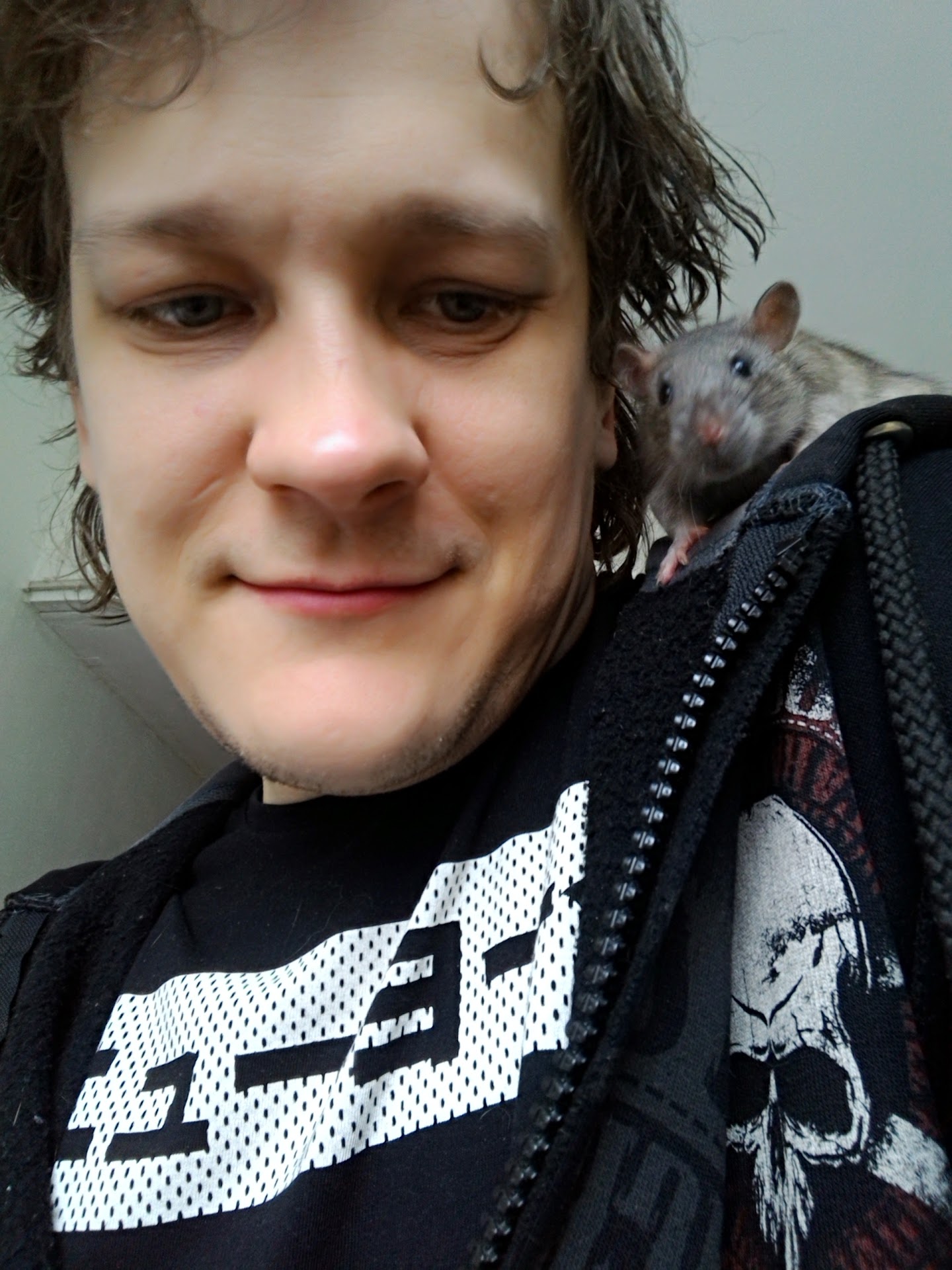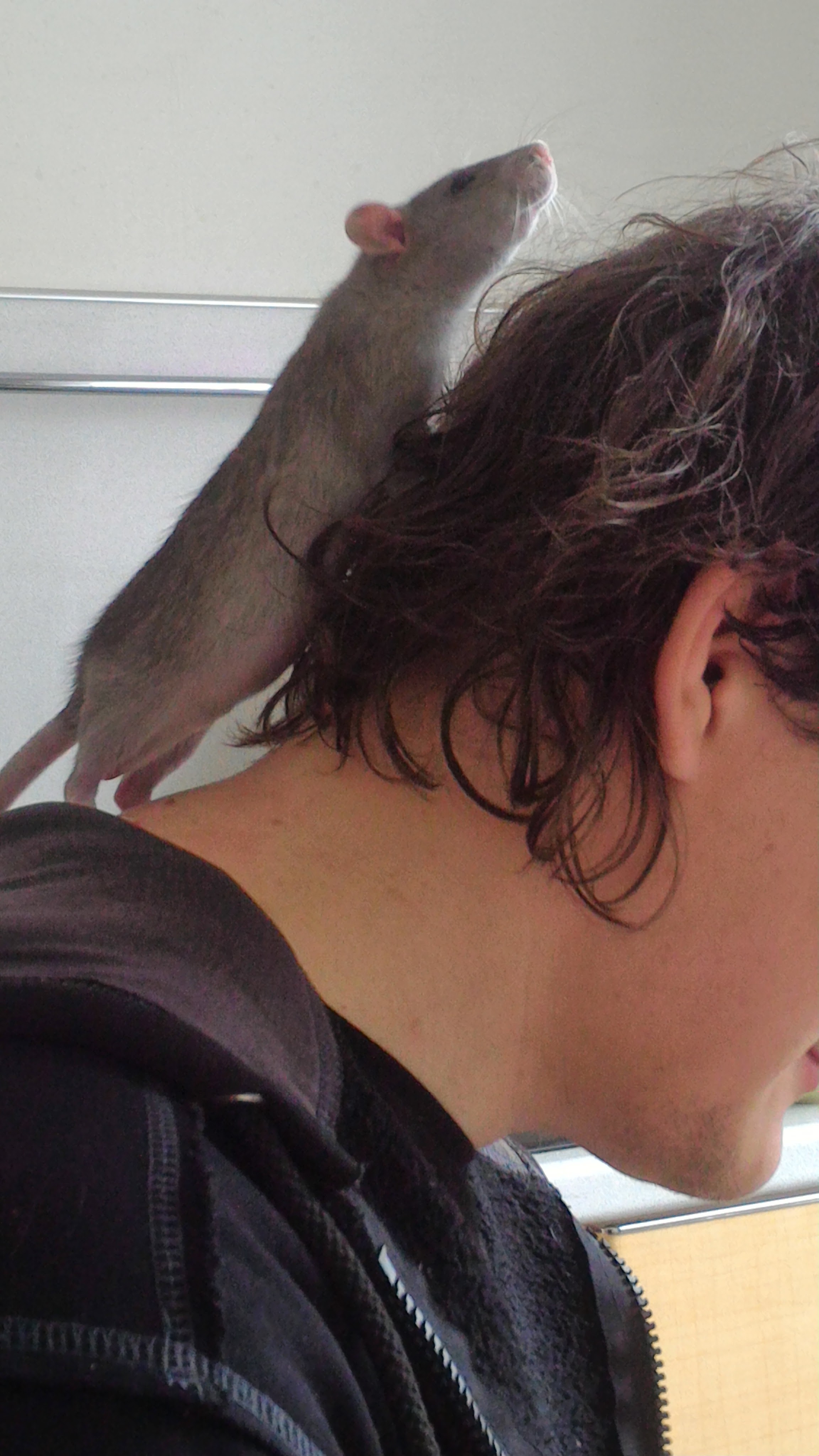 Пибоди более "ручной", он больше любит на муже сидеть, побегает немного и за пазуху лезет. А Пиксель турбовеник, ему надо все обежать, погрызть, залезть слезть, еще раз залезть, еще раз погрызть, проскакать галопом и по кругу)