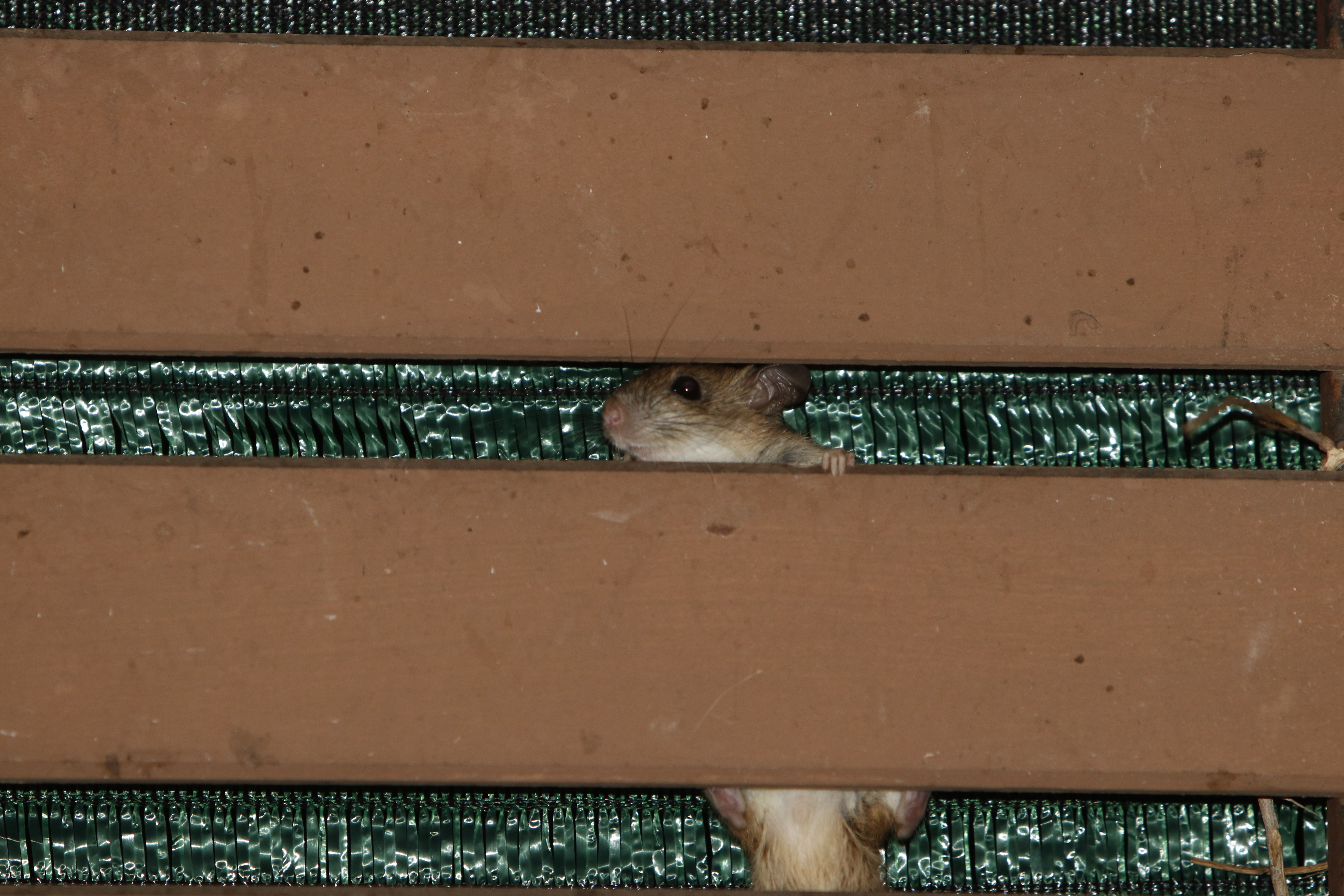 Крысей прекрасен! Он просто король среди ниндзя. Он курсирует между старым диваном, где сделал себе гнездо и мусорным ведром на кухне. Мы его часто видим в момент, когда он бежит через небольшие открытые пространства вдоль плинтуса, но ловить даже не пытаемся. Я несколько раз переделывал ловушку, но он все понял и стал еще осторожнее. Если раньше он туда заходил и собирал еду вокруг приманки, то теперь даже перестал туда заходить.