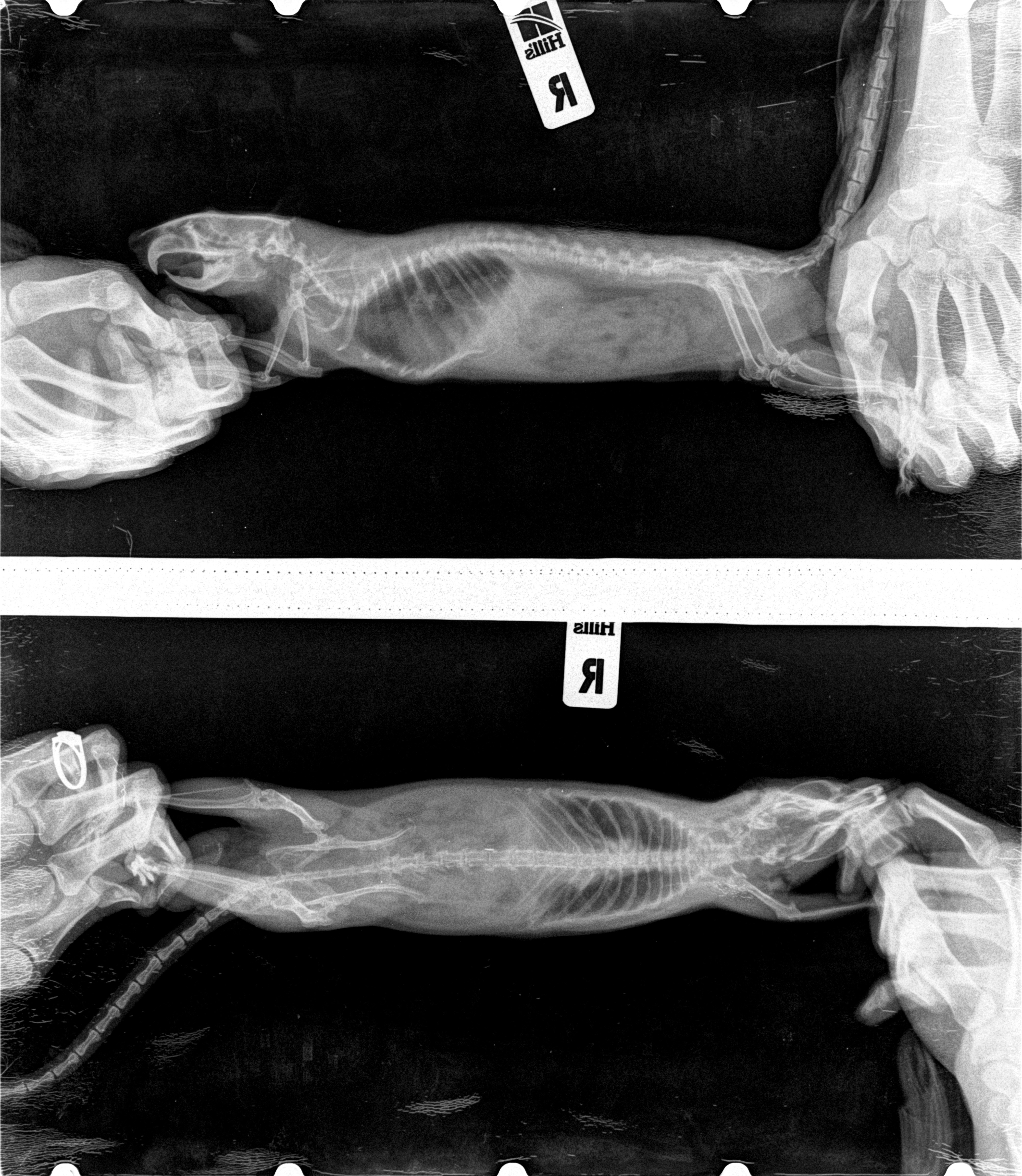 Заключение по рентгену: в правой латеральной и вентродорсальной проекции тени легких визуализируются четко, без видимых патологических изменений.