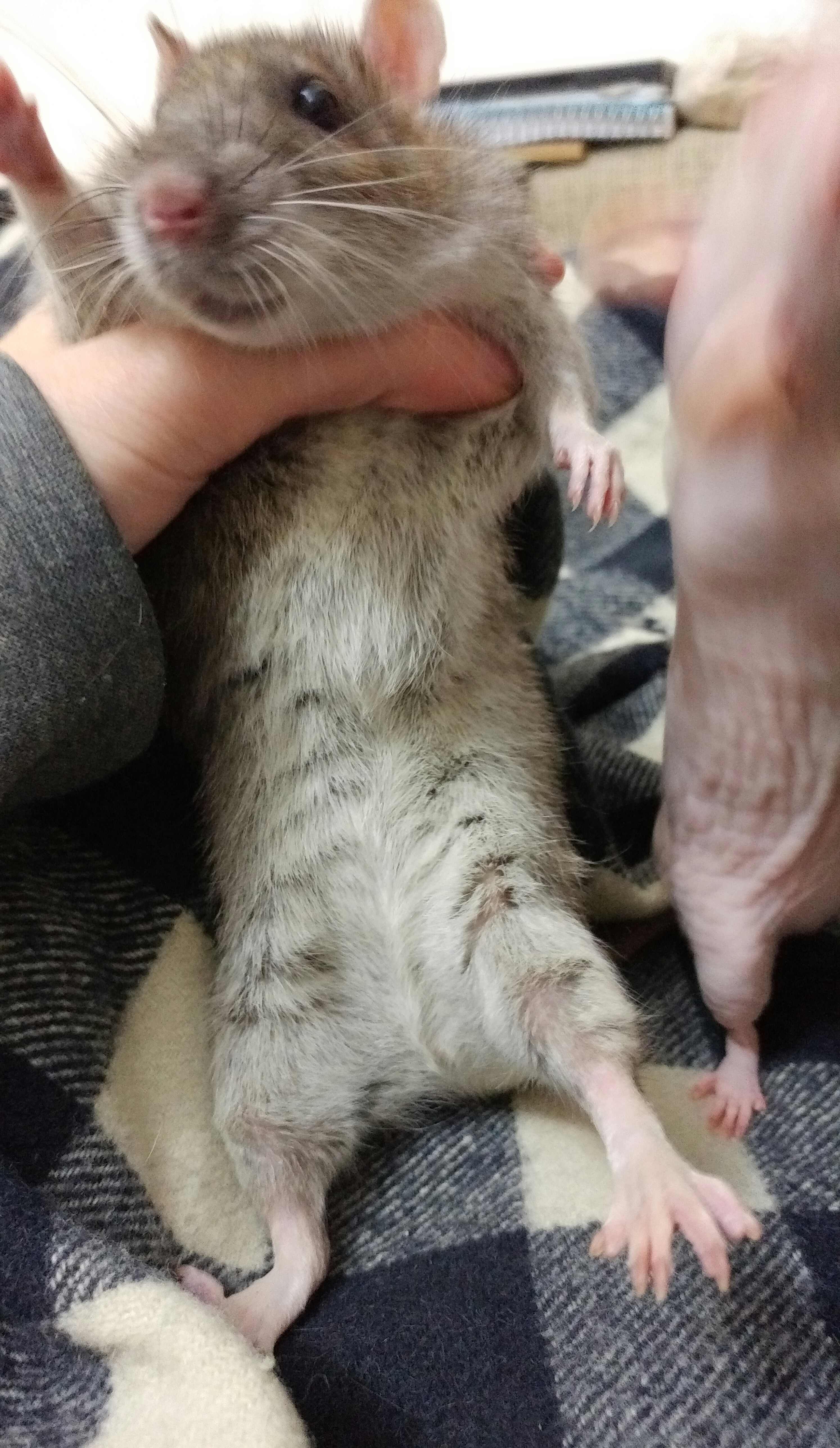 сегодня умерла Батата, моя последняя крыса. 2.7 - почтенный возраст для лысой, слепой на один глаз крысы, на ее счету полтора года борьбы с опухолями и 5 операций. последний год она жила не у меня - когда она осталась одна и впала в депрессию - я отдала её в другой дом в громадную девчачью стаю, где она верховодила, пока не пережила всех своих молодых подружек. маленькая лысая зараза, крыса-боец, мягких тебе облаков.