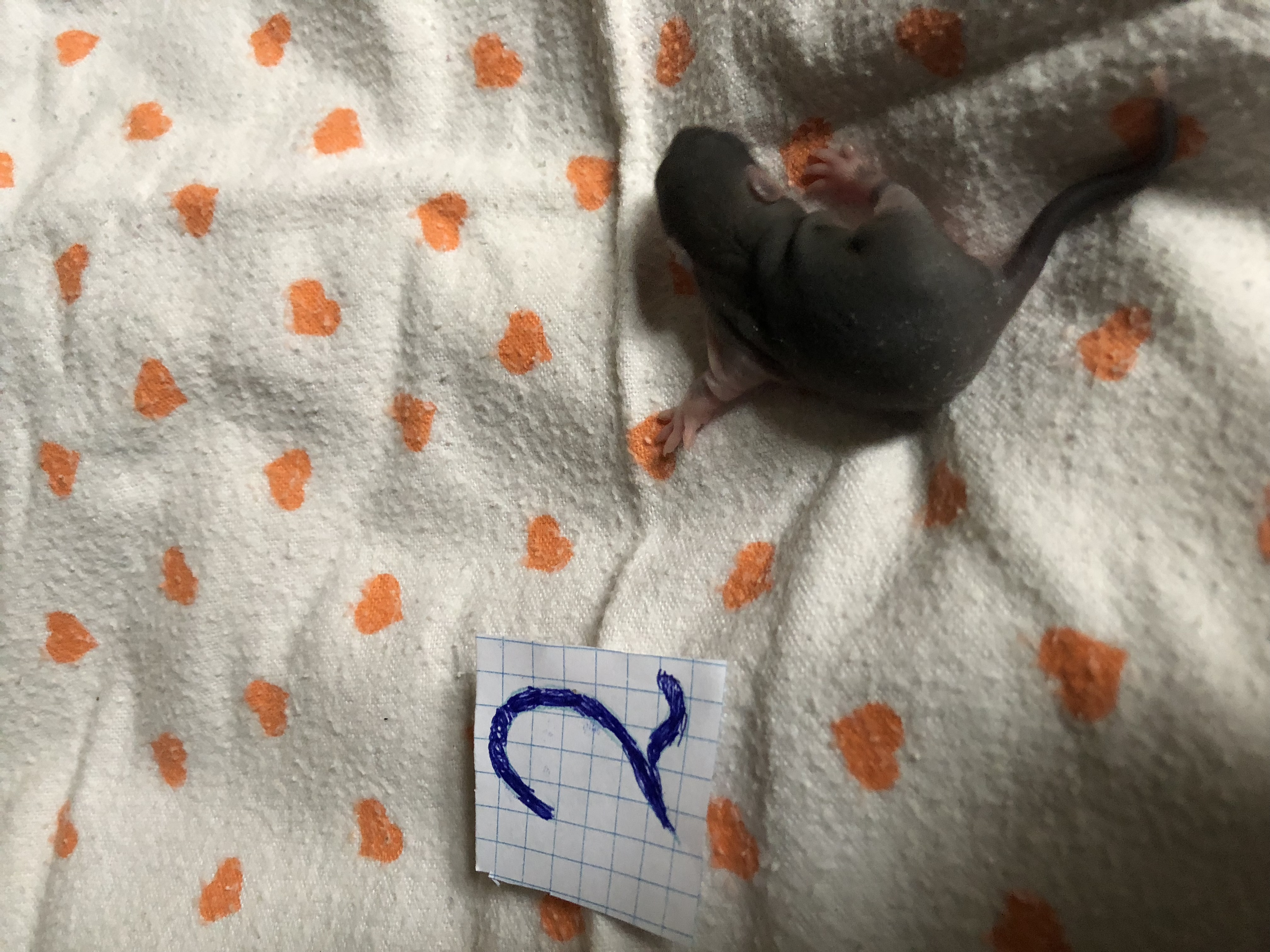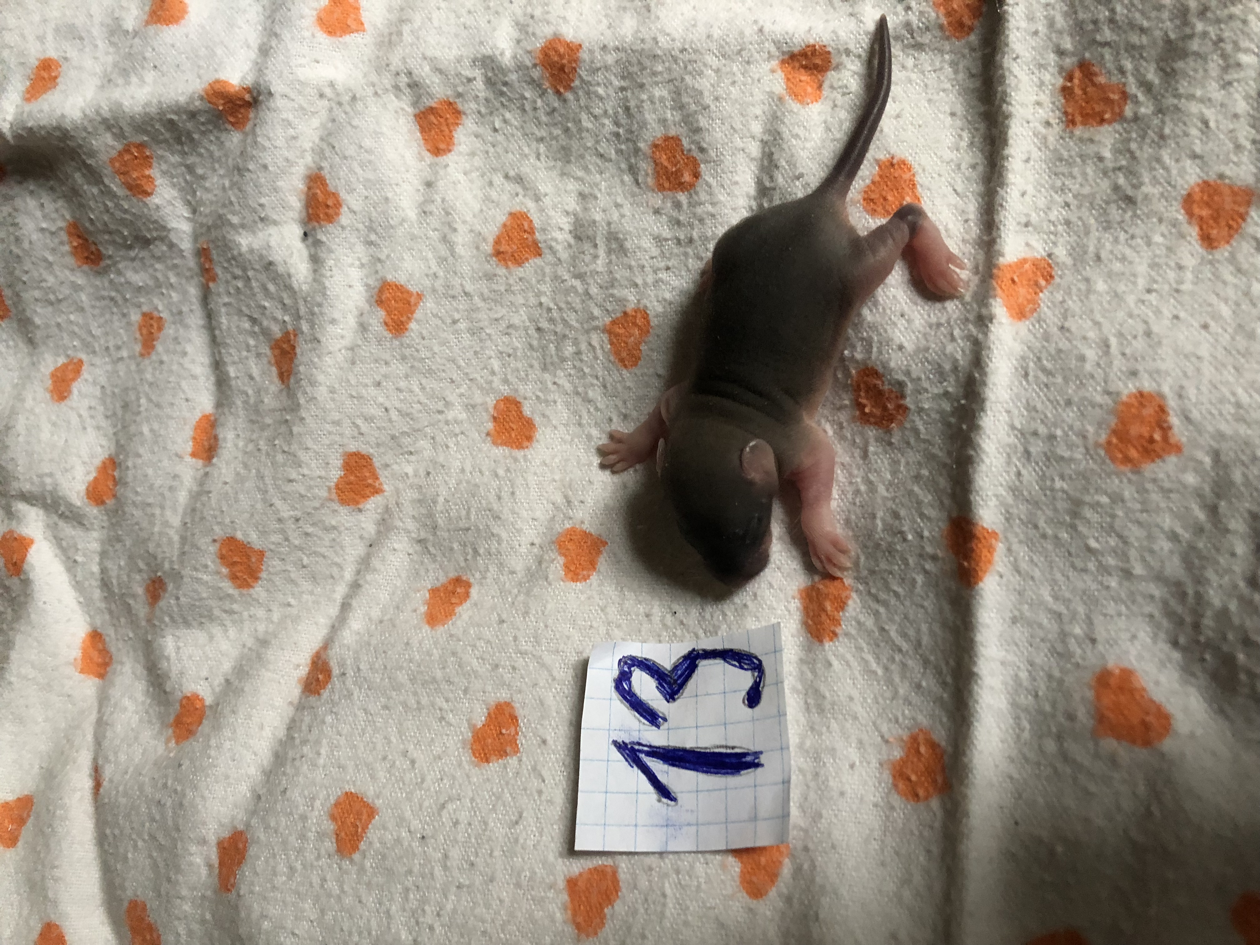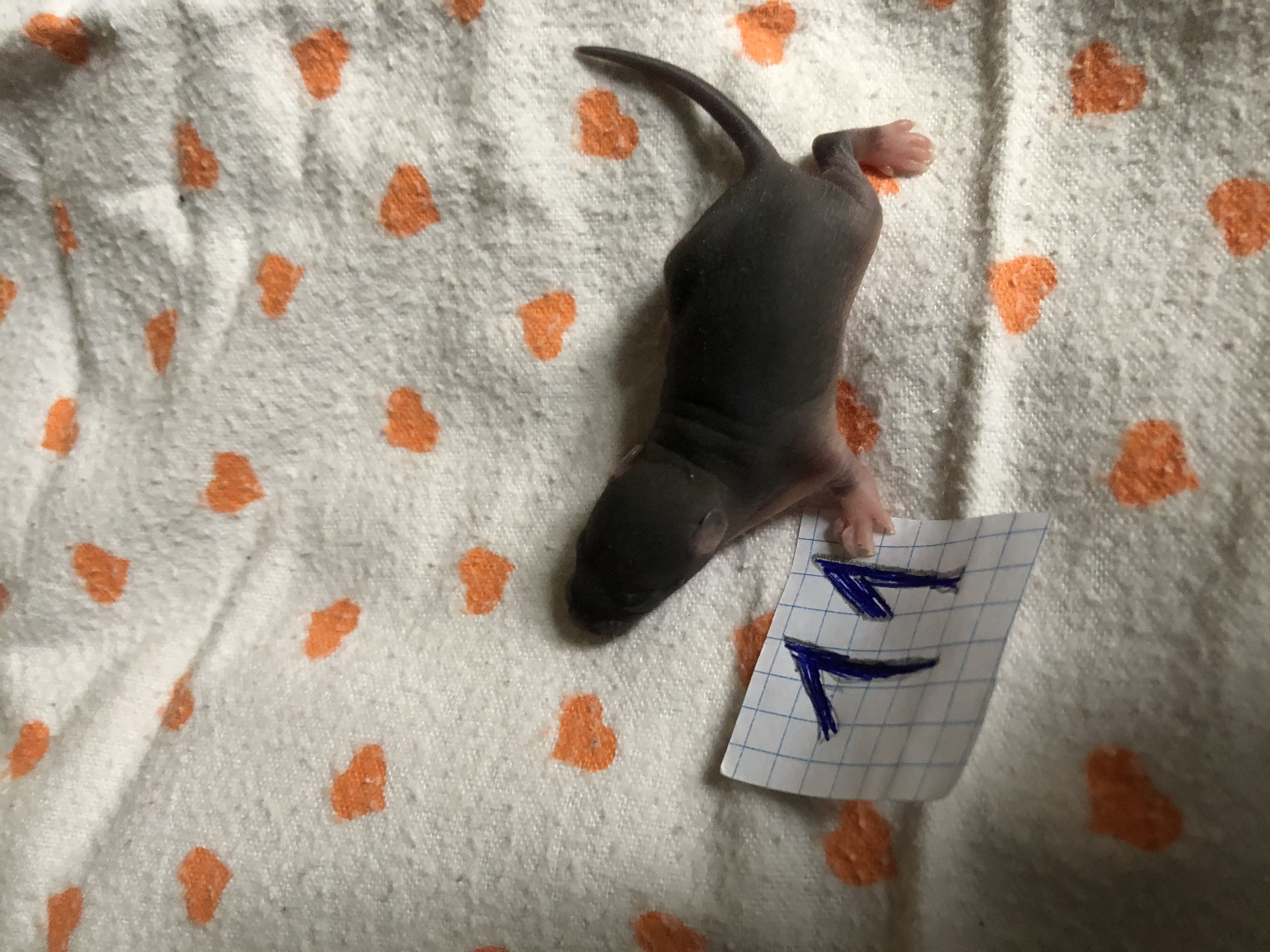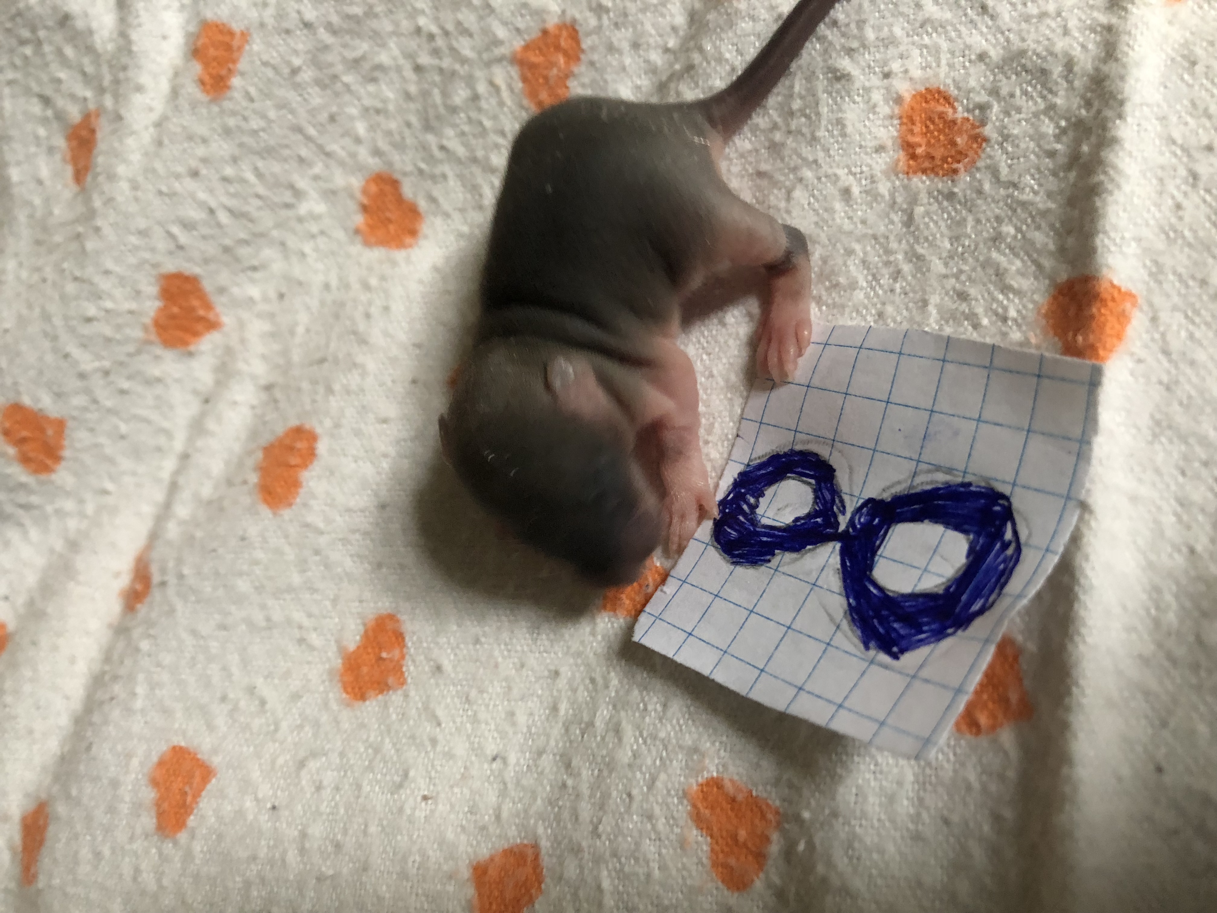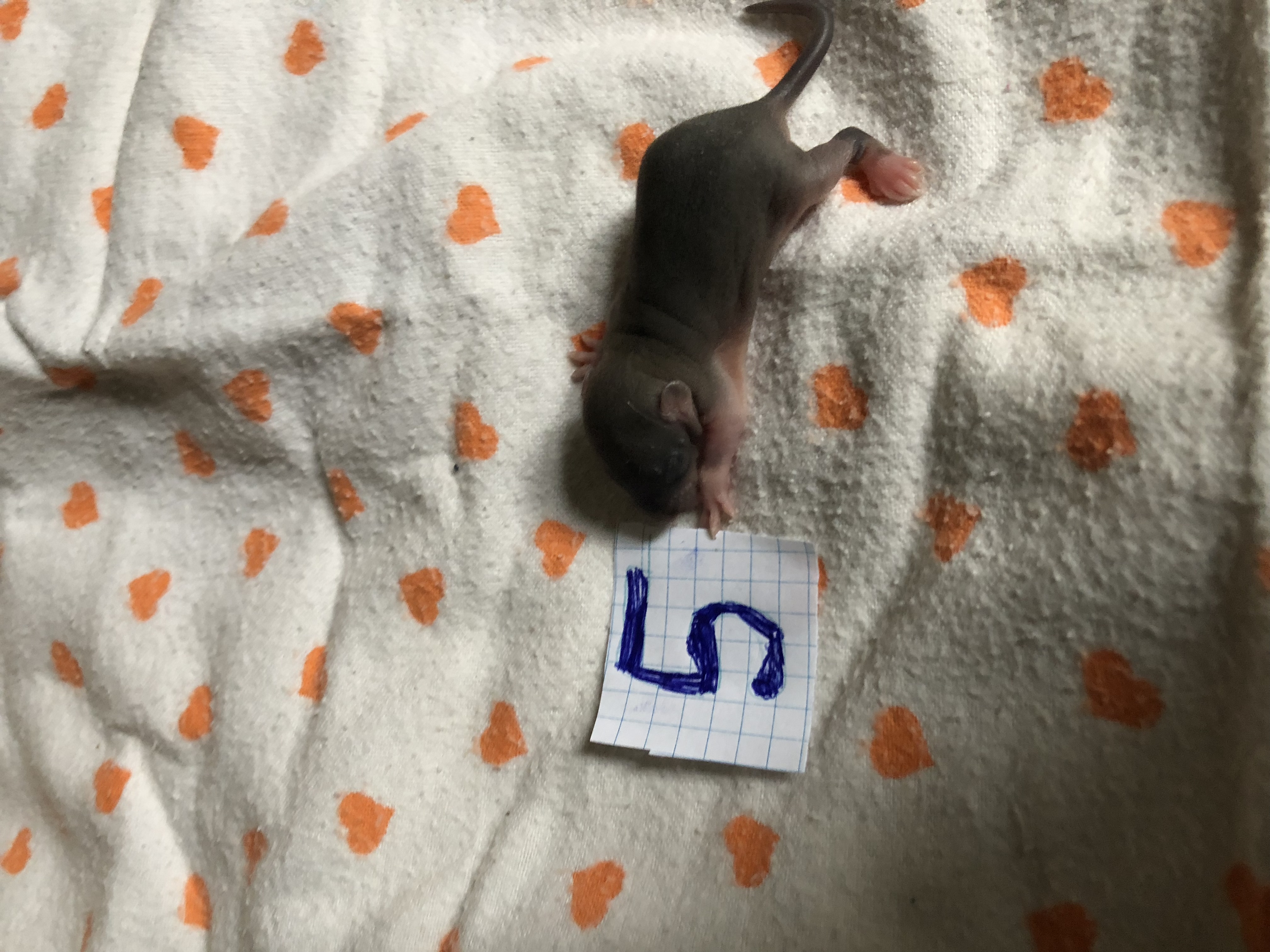Посмотрите внимательно на животик каждого крысенка. Сейчас очень хорошо видно у кого есть соски, а у кого их нет. У девочек есть соски, у мальчиков нет.