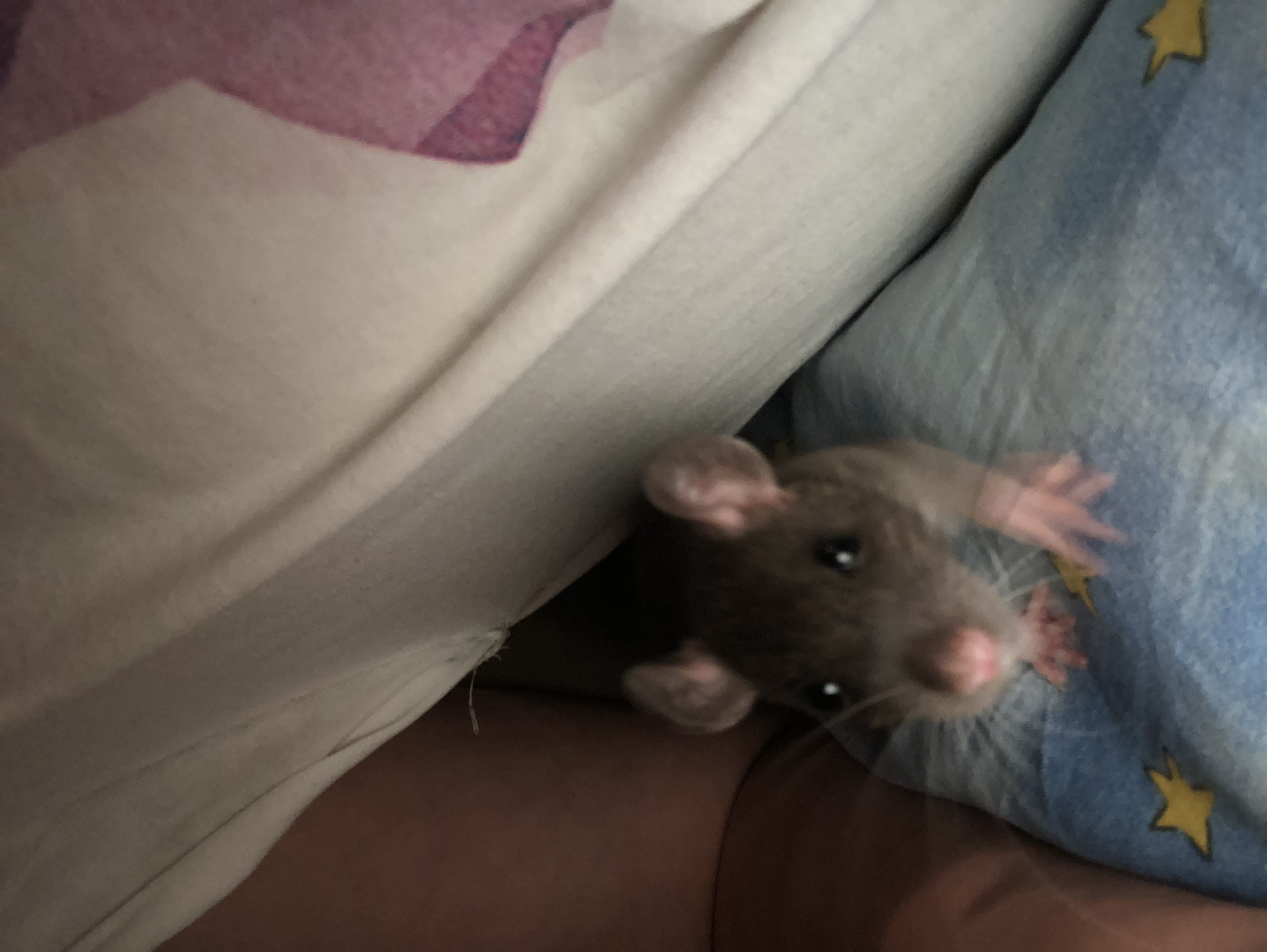 Последний малыш-мальчик. Очень ручной. Скучает по братьям, стараемся ему уделять по максимуму внимания. Но нуждается в постоянной семье крысиной)