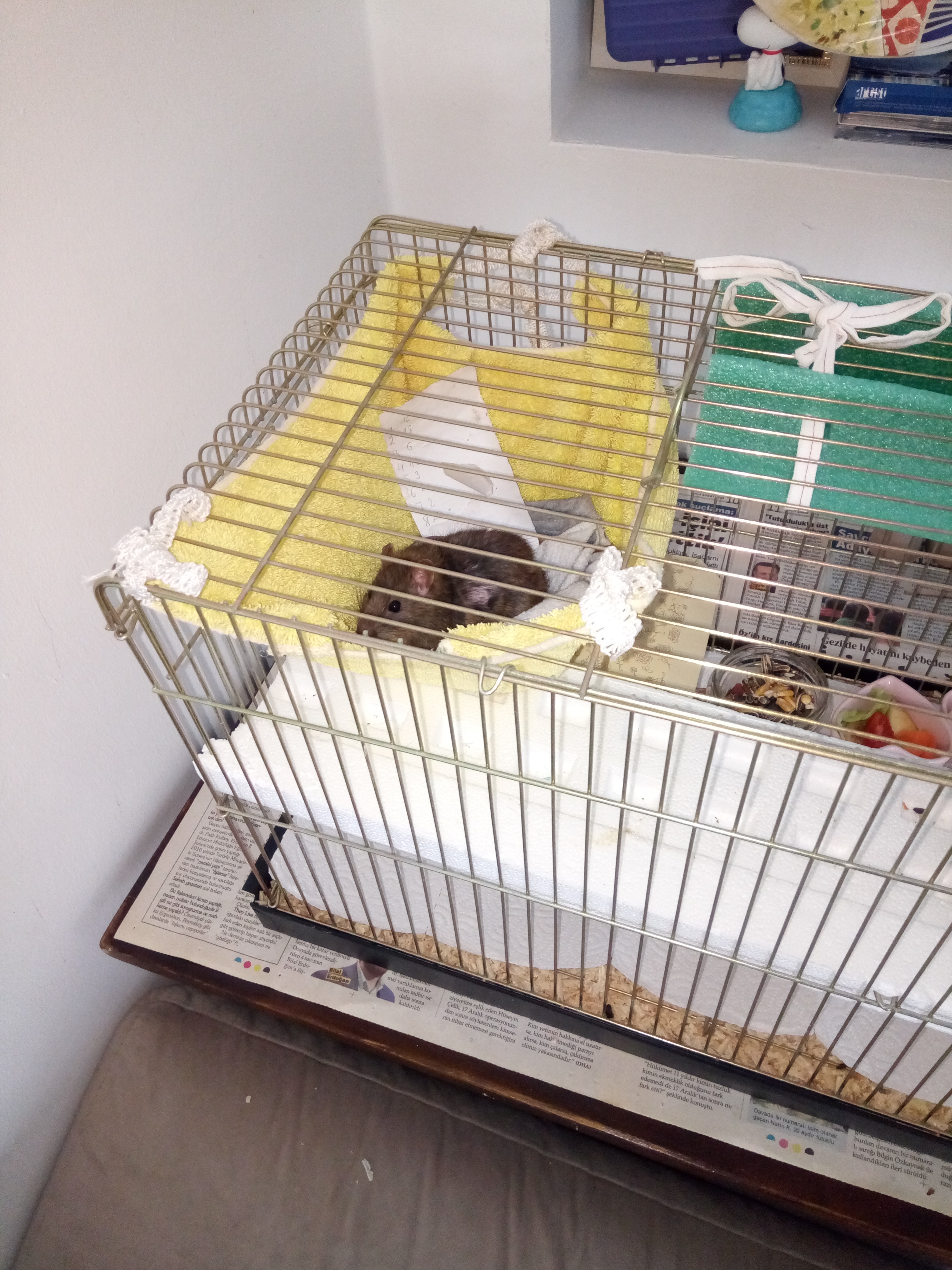 . Стараюсь заслужить его доверие и симпатию: разговариваю, кладу перед ним лакомства. Вижу что он меня боится меньше других членов семьи. Раньше мы переносили его иногда с коробочкой в высокую пластиковую ёмкость, где муж пытался приучить его к поглаживаниям, тогда Джери перестал заходить внутрь коробочки и днём отсиживается в гамачке или в зелёном тунельчике вверху клетки, где его не достать. Но когда он в тунельчике, я иногда его поглаживаю по спинке пальцем, так вроде уже не протестует и терпит. Когда чищу клетку, то он тоже отсиживается в тунельчике, прямо замирает. Как вы думаете когда его можно будет отпускать в путешевствие по комнате?Помогла пасючку, теперь принимайте в свои ряды