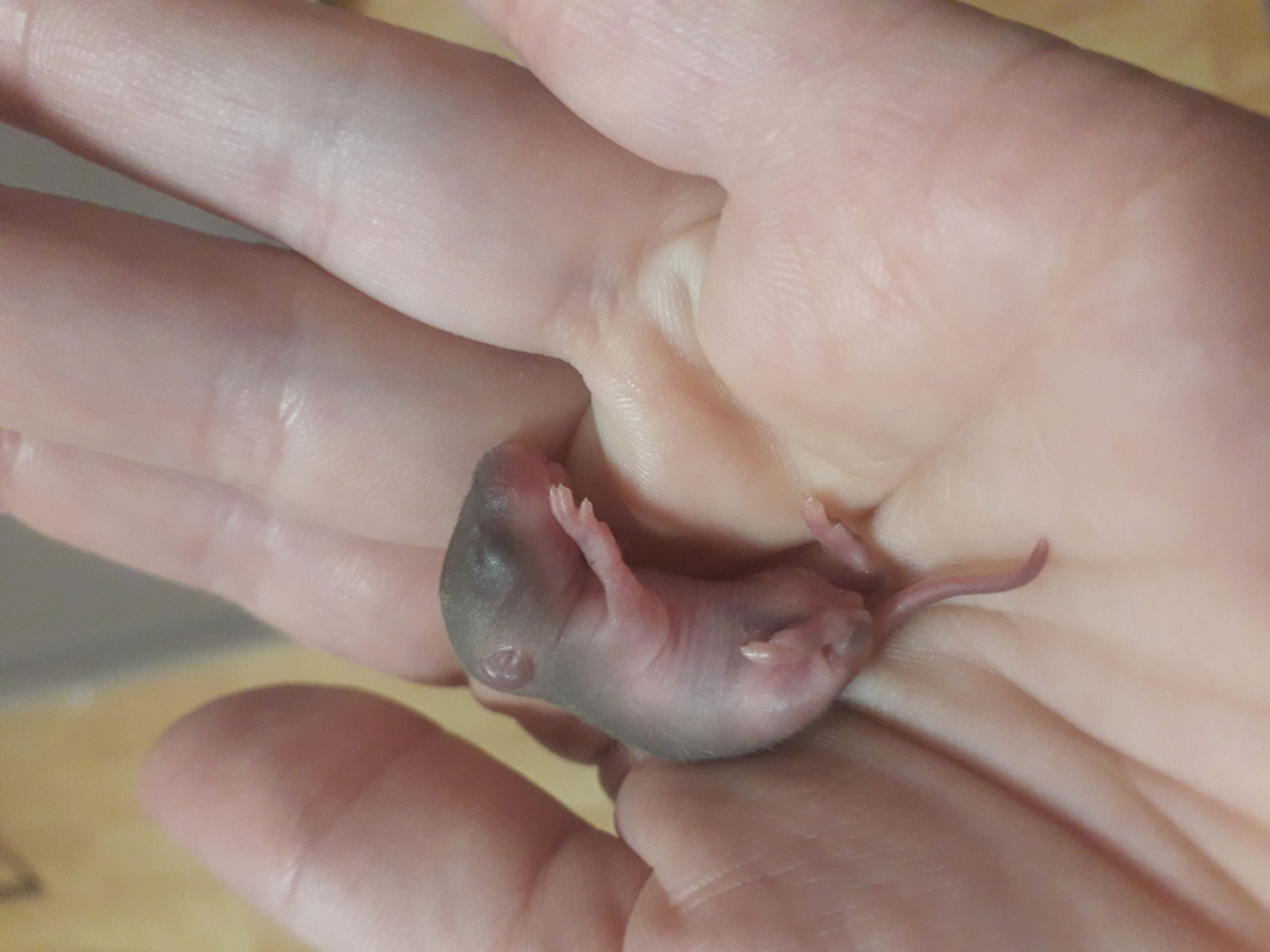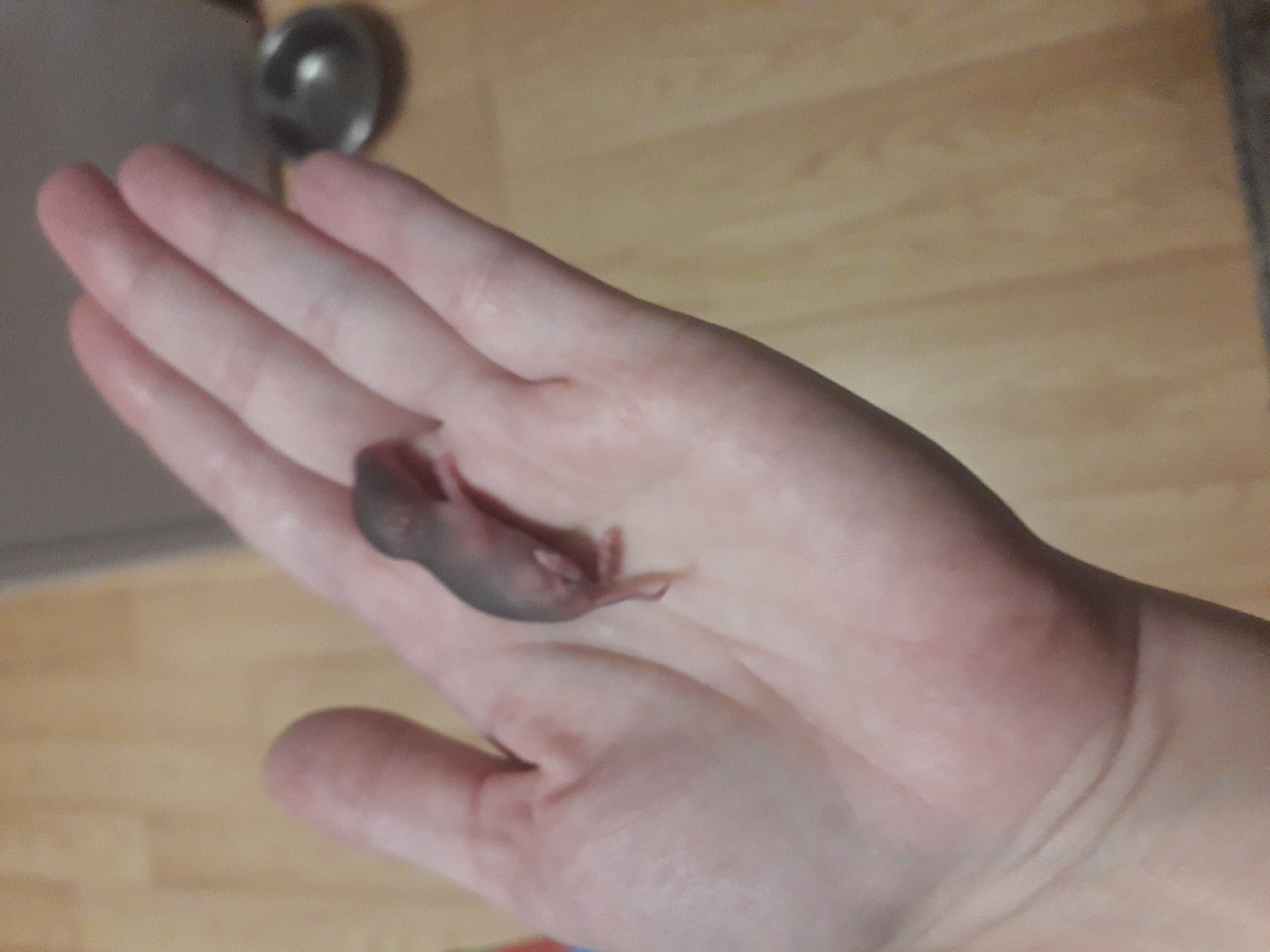 Здравствуйте! Только сегодня зарегестрировалась, если что-то неправильно пишу/спрашиваю, заранее извиняюсь... Сын во дворе случайно нашёл слепыша голенького крошечного на земле, был грязненький, холодный, открывал ротик. Принесли, обтёрли тёплым влажным ватным диском, согрели, развели сучье молоко Роял Канин, кормить пыталась аккуратно с пипетки, с ватной палочки, что-то попадало, но плохо получалось, хоть беленькое молоко в желудке виднелось, прочитала что с кисточки можно, стало удобнее, малыш сосал. В коробочку бутылку с тёплой водой положила, салфетки бумажные, кусочек войлока, сверху ещё нарвала салфетку кусочками. Кормила каждые 2 часа, и ночью тоже, слегка массажировала животик и попку, малыш какал не только в руках, но и в коробочке на салфетках, писял только на салфетки в коробочке. Сначала думали что мышонок, потом что крысёнок (муж сказал мордочка крысиная), 12 августа нашли, 17-го нчал открывать один, затем другой глазик))) Сейчас глаза открыл полностью, очень активный, прыгучий, но очень-очень мелкий (4-5 грамм), судя по чёрной полоске на спине - мышонок полевой. Зубки вверху и внизу есть, кисточку грызть начал, стали в пластиковой детской ложечке, держа в руках давать слизывать молочко (сучье).