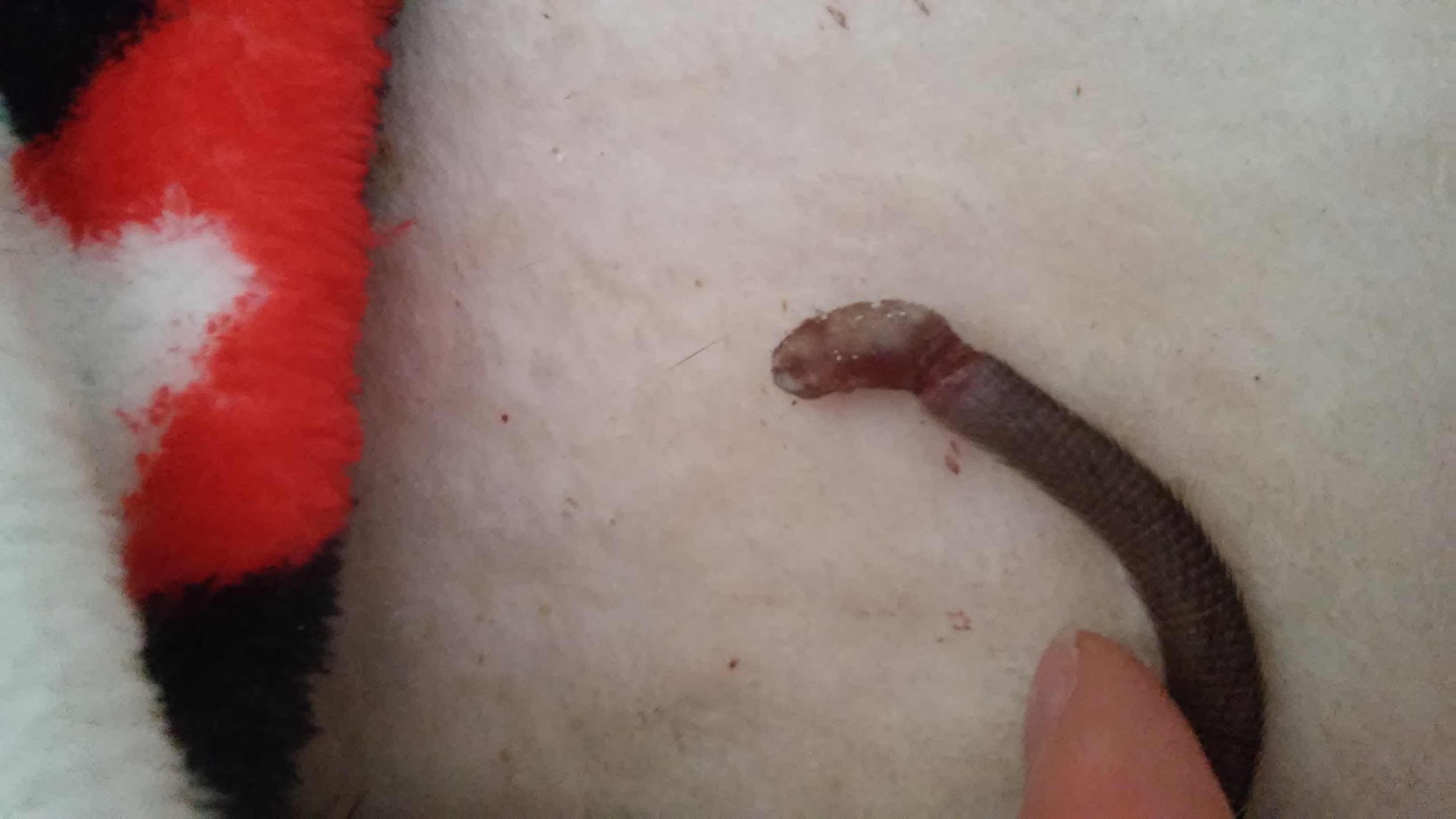 В идеале было бы правильно этот кончик ампутировать, зашить и все будет хорошо. Но это если есть грамотный ратолог, который знает как занаркозить крысу и не убить.