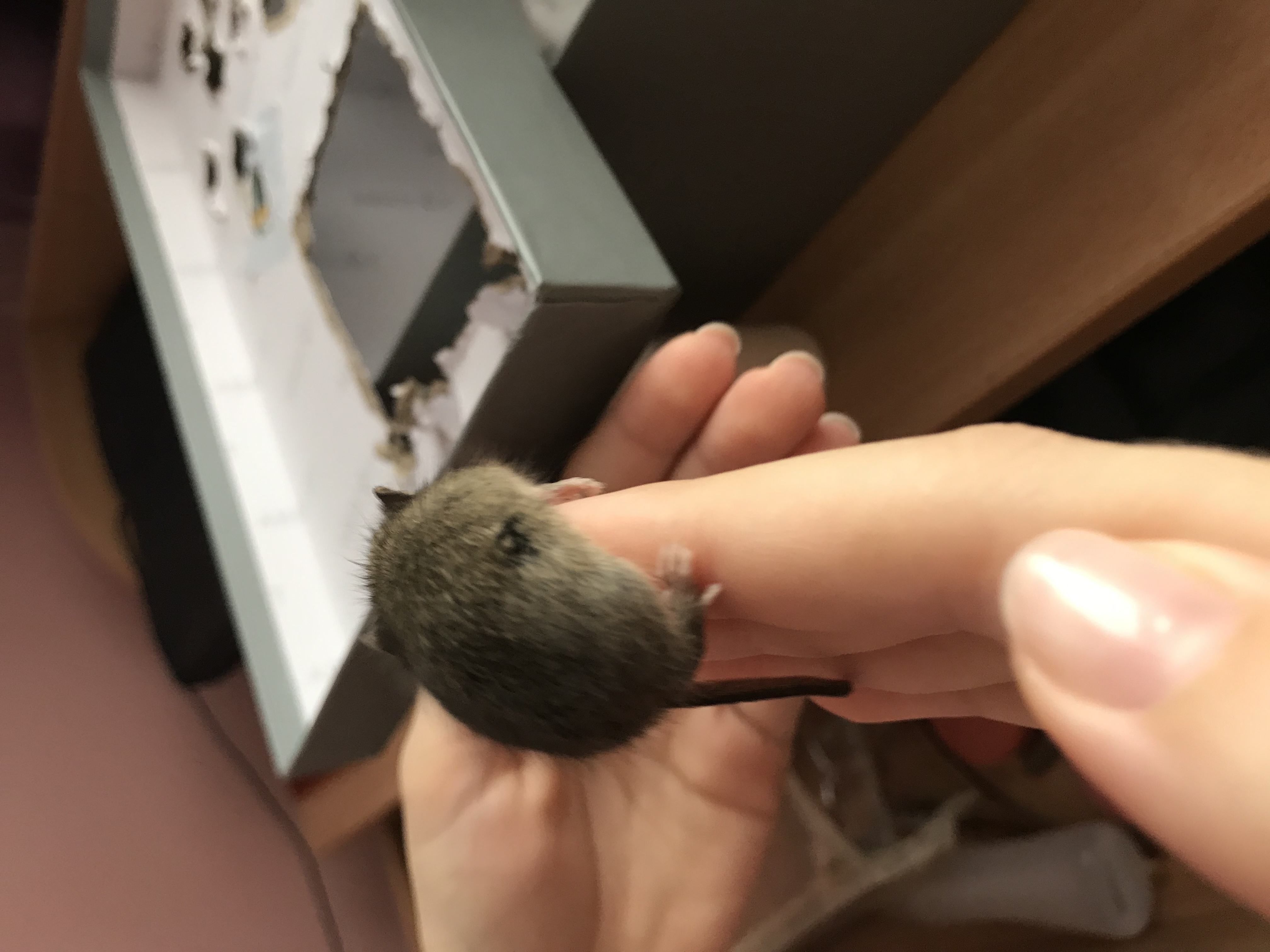 Сегодня нашли этого малютку в подъезде , бегал по площадке между этажами. Подумали что крысёныш. Мы сначала думали не тревожить его, а потом шли обратно минут через 20 и он всё ещё был там. Решили что он не может спуститься, потому что он совсем маленький. Решили взять на передержку. Постелили ему в коробку мягкие полотенца, накрошили салфеток, поставили крышечку с водой и гречкой размоченой, так же поставили бутылку с горячей водой, что бы он грелся. Сейчас сомневаемся по поводу того, крысёнок это или мышёнок и что с ним делать дальше. Оставлять или отпускать? А то прочитали в интернете, что мышата дикие в неволе умирают в течении недели. Помогите пожалуйста!