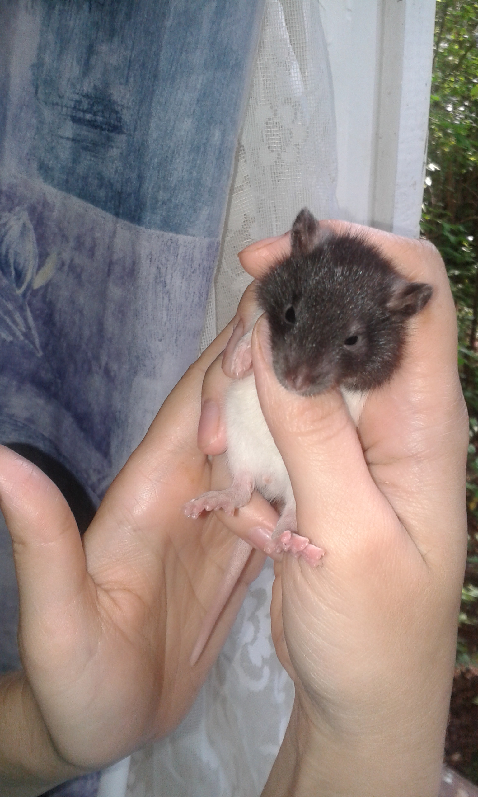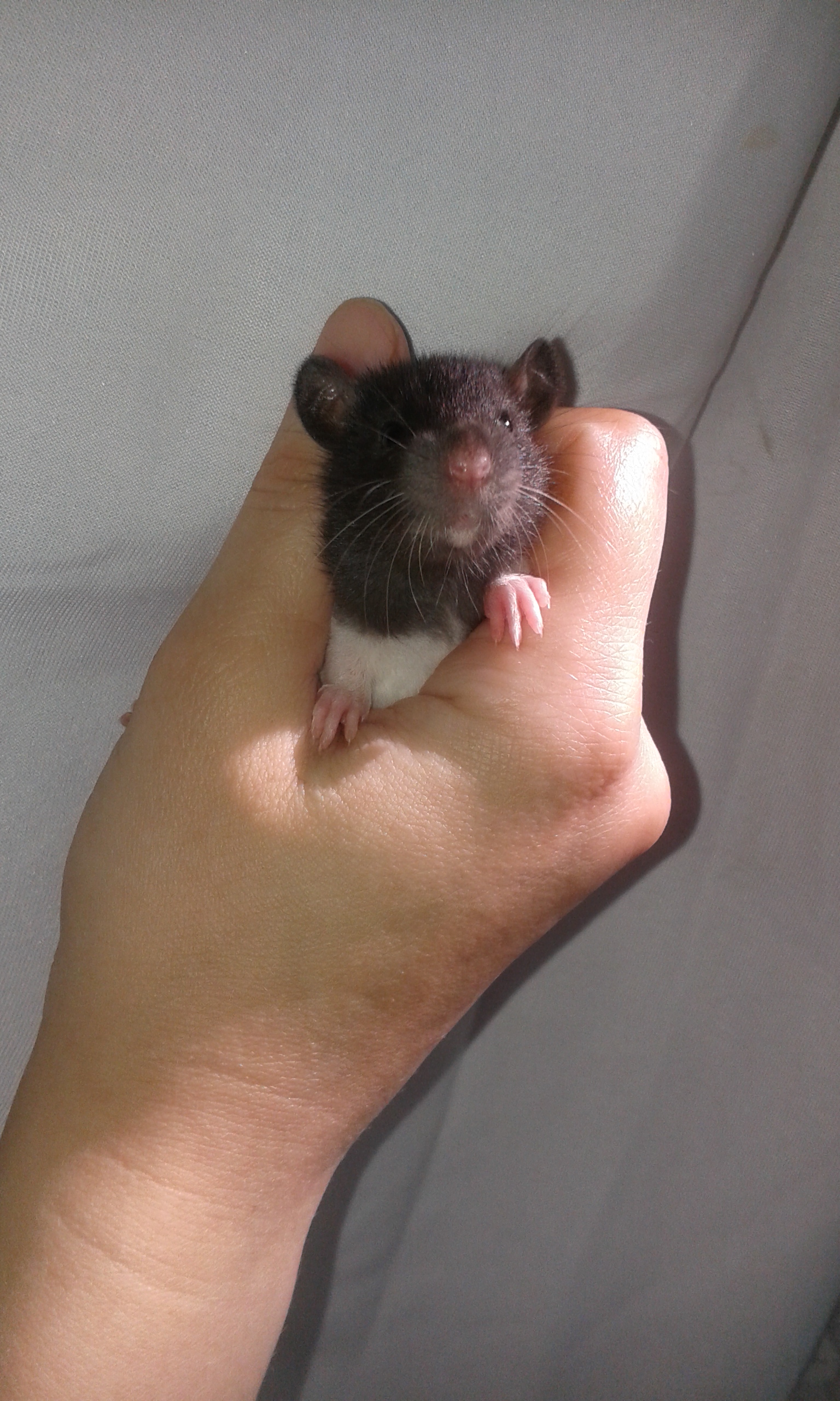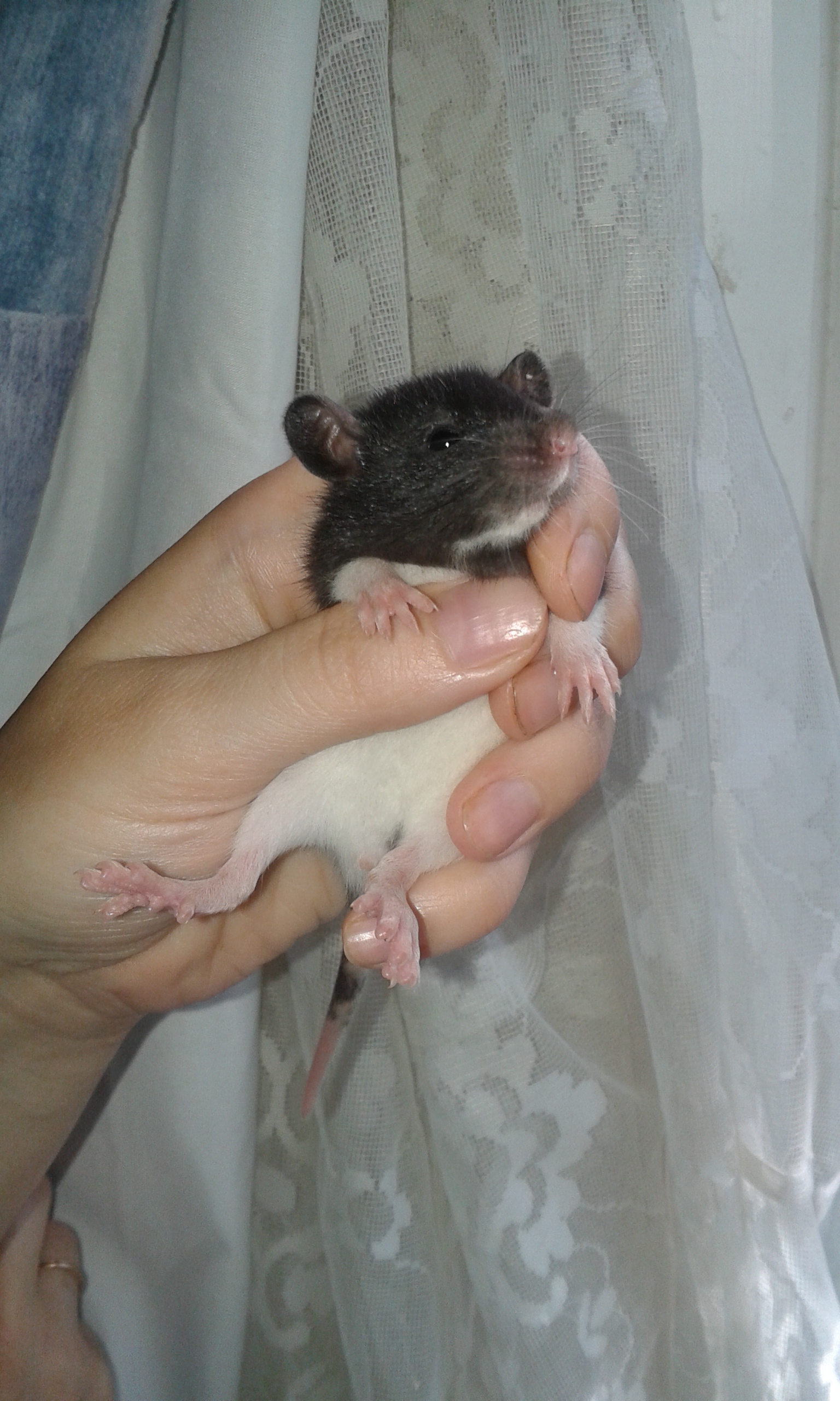 Отдаются в добрые руки крысята, рожденные от крысы купленной в зоомагазине, для подселения к стайке девочек. Крыса расцветка хаска-серая, когда покупали было 2 месяца. Родилось 13 крысят 10 июля. Весь помет остался жив, всех выкормила, никаких проблем не было, глазки крысята открыли в 2 недели все в один день. Крысята имеют окрас хаски и капюшон, все черного цвета, кроме одного мальчика . Ушки: двое дамбо, остальные стандартные, шерсть стандартная.