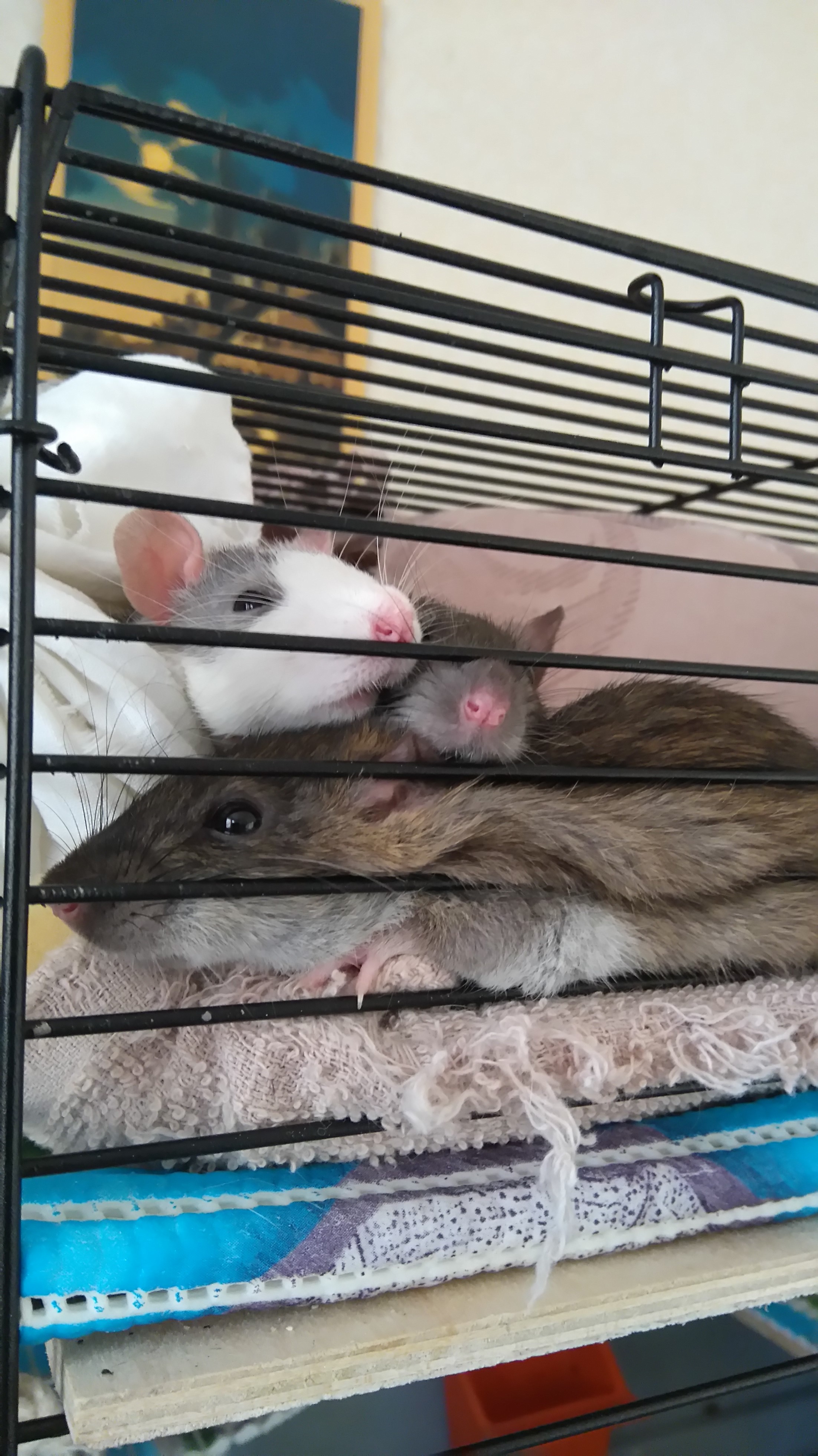 Так мы спим - то хася на пасе, то пася на хасе. Наблюдала интересную картину...одна декорашка стояла прогнувшись, пася у неё на спине, а третья вроде вылизывала под хвостом...я читала, что они помогают друг дружке при течке - это вот так происходит? А ещё мне интересно узнать по поводу размеров. Как нам сказали, декорашки родились 1 ноября, но они сейчас почти как пася, которой уже 4,5 месяца, пасюки вырастают мельче или просто хозяйка перепутала возраст подружек? У неё много разновозрастной детворы...